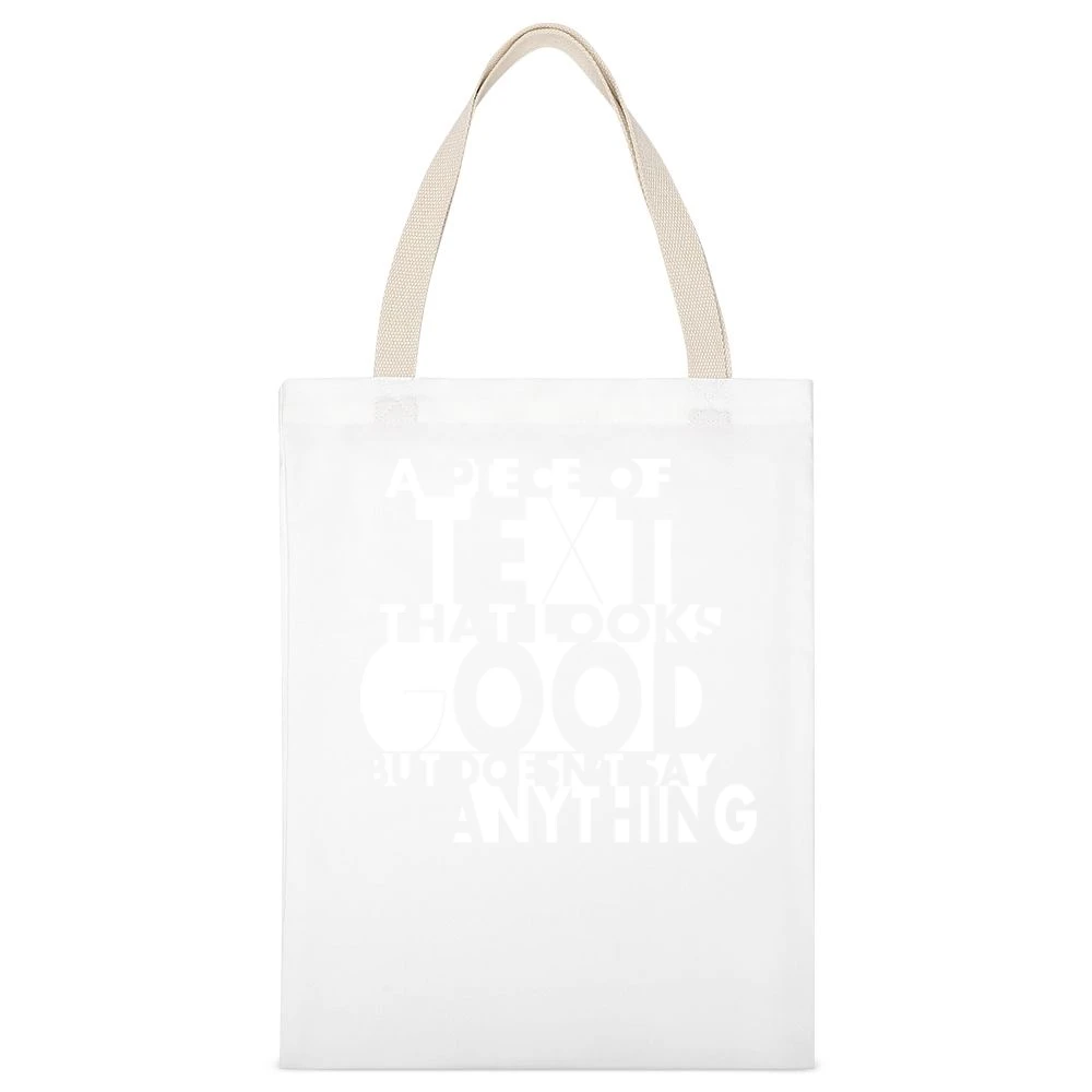 Introducing our humorous canvas tote bag that combines style with a sense of fun! Featuring a minimalist design with light-hearted text that looks great but doesn’t say much, this bag is perfect for those who appreciate subtle humor in their accessories.