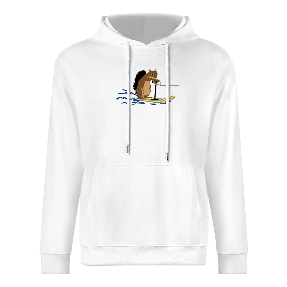 Introducing the Anchorman Squirrel Waterski Hoodie, where whimsical design meets comfortable practicality. This unique hoodie showcases an adorable squirrel waterskiing, making it the ideal apparel for those seeking both fun and functionality.