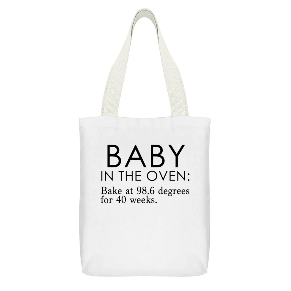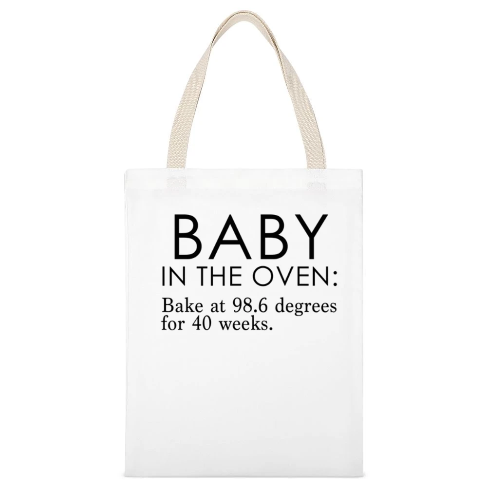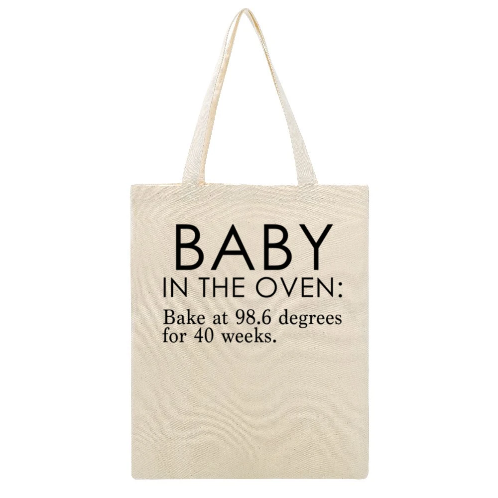 The unique graphics featured on this canvas tote bag cleverly depict the whimsical metaphor of “baking a baby over 40 weeks.” This artful design resonates deeply with the experiences of pregnancy, offering a lighthearted perspective that many can relate to. It’s perfect for baby showers, maternity celebrations, or simply for everyday use while shopping for baby supplies. The humorous sentiment behind the design ensures that this bag will elicit smiles and start conversations wherever you go.