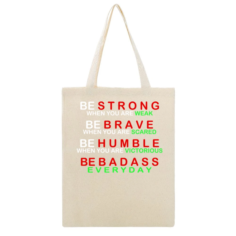 In conclusion, the Be Badass Everyday Canvas Tote Bag combines bold artistry with practicality, designed for the modern individual who refuses to compromise on style. Whether you’re shopping, working, or simply out and about, this bag speaks volumes about your personality while adding effortless flair to any outfit. Dive into the world of confident self-expression and upgrade your accessory game now!