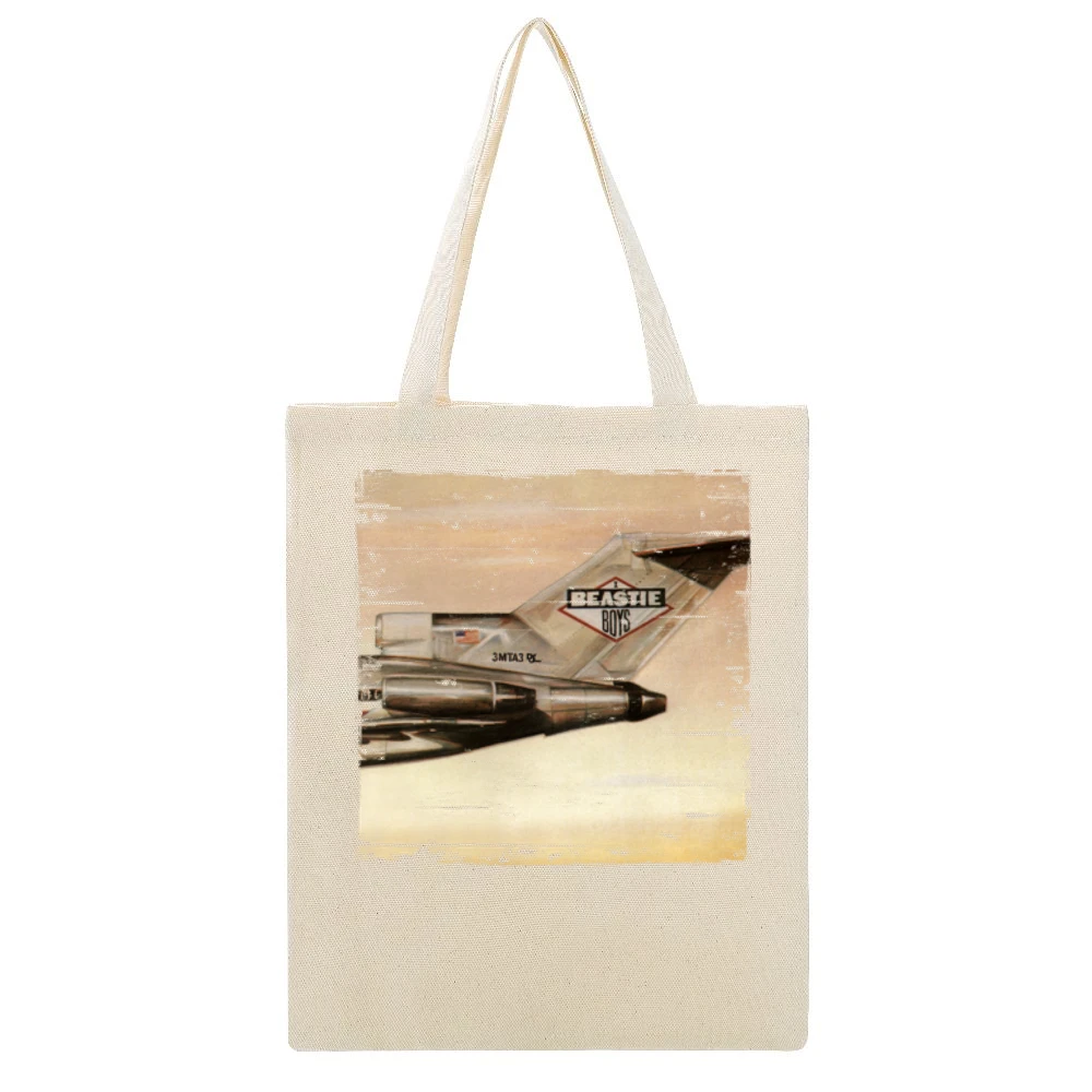 The distressed image of the Beastie Boys’ ‘Licensed To Ill’ album cover is more than just a design; it’s a piece of music history. Released in 1986, this album was groundbreaking, blending rap with rock and creating a sound that resonated across generations. The vibrant artwork, featuring the memorable airplane graphic, captures the audacious spirit of the band and their innovative approach to music. Perfect for displaying your love for this iconic group, this tote bag is a conversation starter that celebrates the legacy of the Beastie Boys.