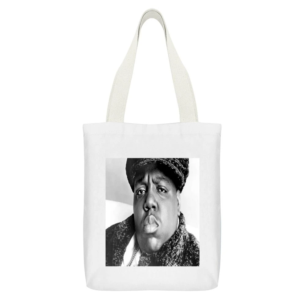 Introducing the Biggie Tshirt Canvas Tote Bag, where iconic artistry meets functional design. This tote bag, featuring a striking Biggie-inspired graphic, is perfect for those who appreciate both style and practicality in their everyday carry.