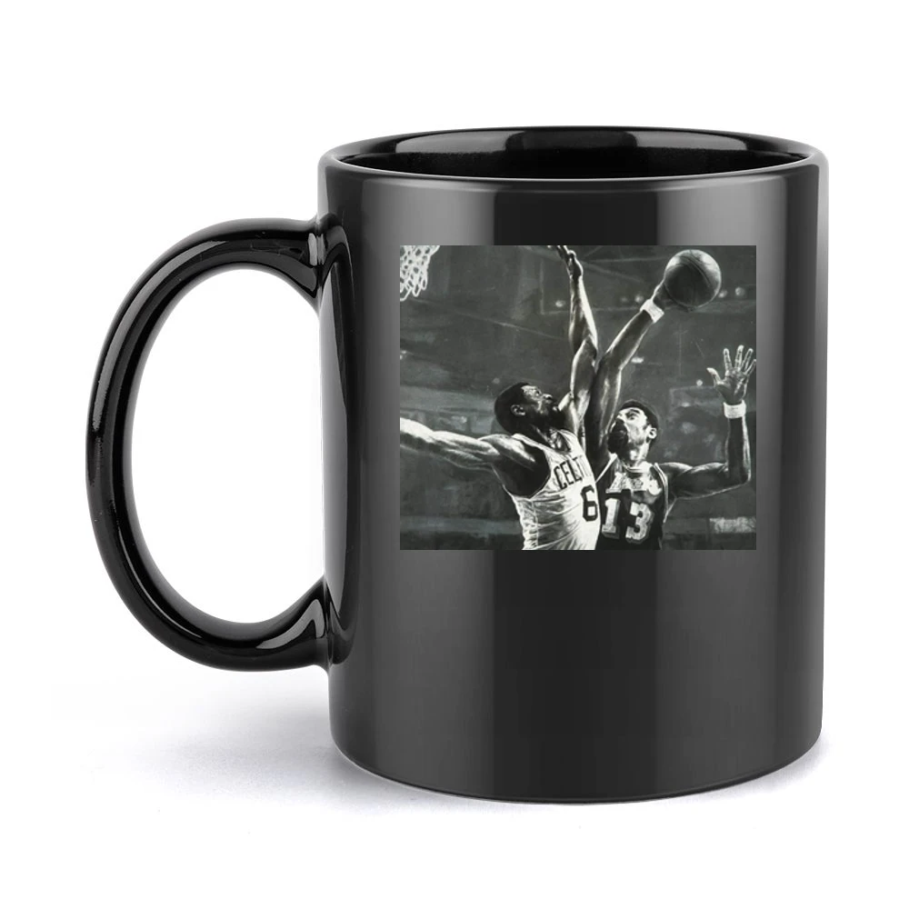 Introducing the timeless Bill Russell & Wilt Chamberlain Classic Sports T-shirt Mug, a perfect blend of rich sports history and everyday practicality. This unique mug features iconic images of two basketball legends, transforming your morning routine into a celebration of greatness.