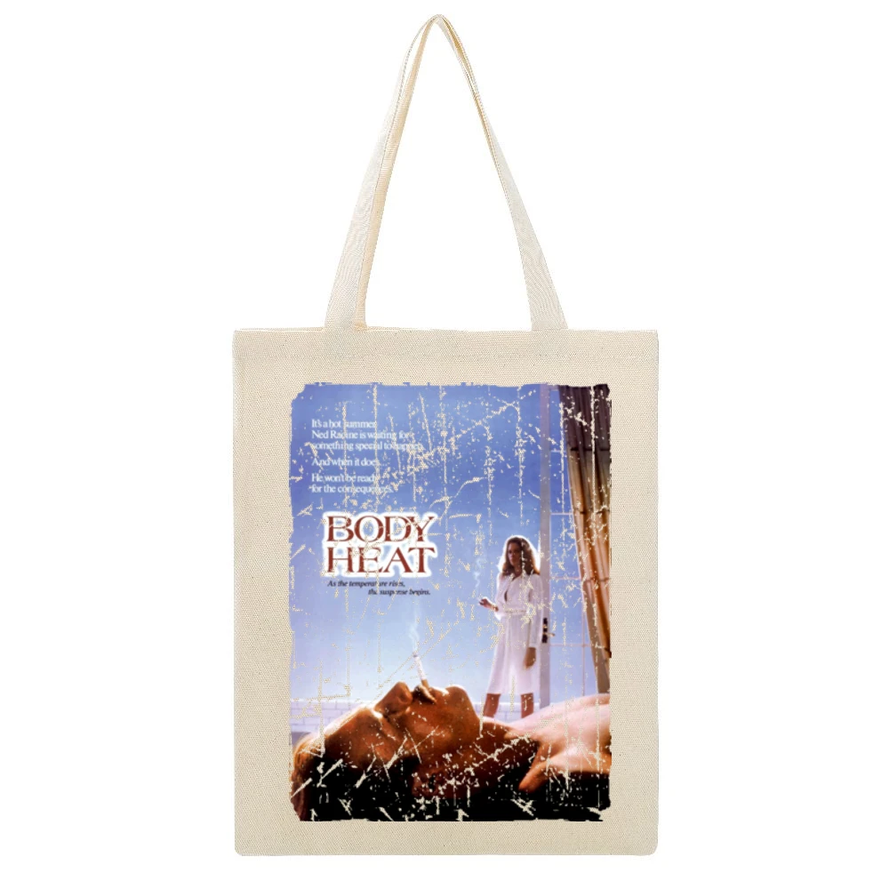 As we emphasize sustainability, this tote bag is also an eco-friendly alternative to plastic bags, allowing you to shop with style while caring for the planet. Its chic design transcends trends, making it a fashionable accessory that you can use for years to come. Elevate your day-to-day style with the Body Heat Movie Poster Retro Aged Look Canvas Tote Bag – a perfect combination of flair, function, and an appreciation for art.