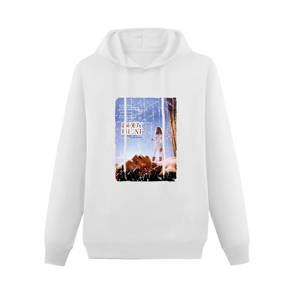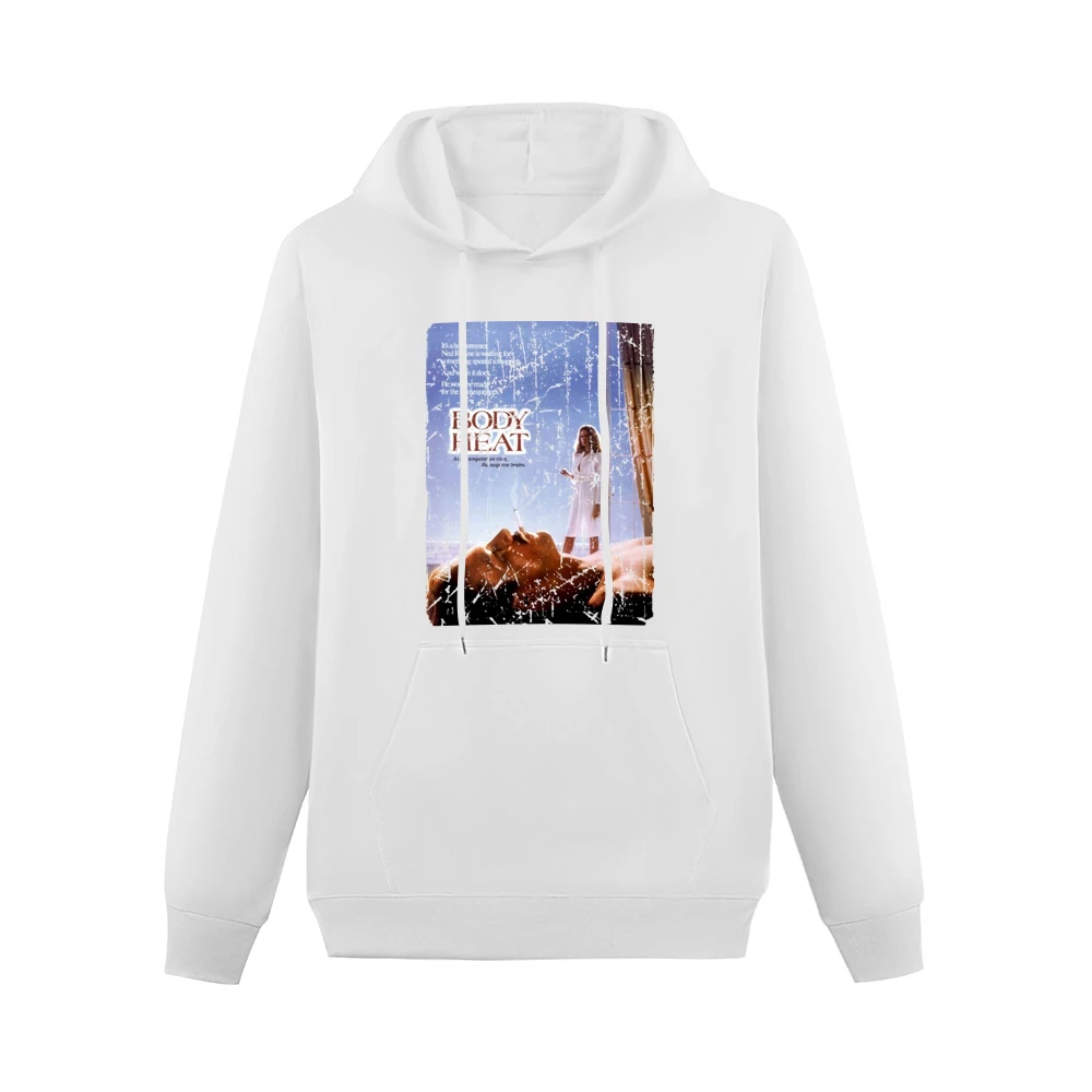 Introducing the Body Heat Movie Poster Retro Aged Look Hoodie, a perfect blend of nostalgia and comfort. This unique hoodie features a striking retro design reminiscent of classic cinema, making it an ideal choice for film enthusiasts and fashion-forward individuals alike.