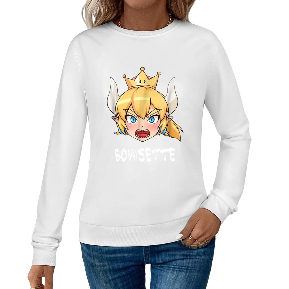 Introducing our Bowsette Super Mario Peach Bowser Cosplay Ladies Pullover Sweatshirt, a stylish and cozy essential for any gaming enthusiast or cosplay lover. This unique sweatshirt features an eye-catching design that celebrates the iconic crossover character Bowsette, combining elements of Princess Peach and Bowser into a fun and fashionable piece.