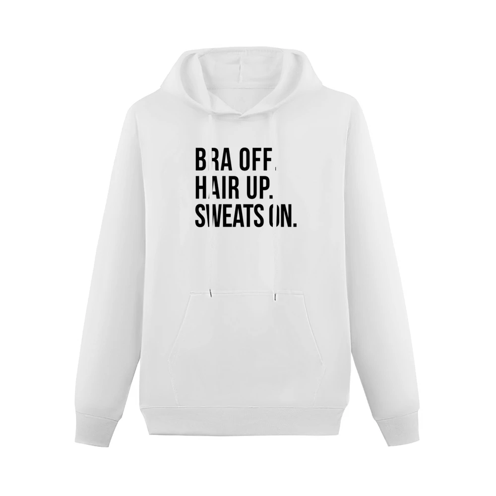 Introducing our latest addition: the “Bra Off Hair Up Sweats On Fun Lazy Day Relax Comfy Day Off Graphic T S Hoodie.” This stylish and cozy hoodie perfectly combines a playful graphic design with everyday comfort, making it an essential piece for your laid-back wardrobe.