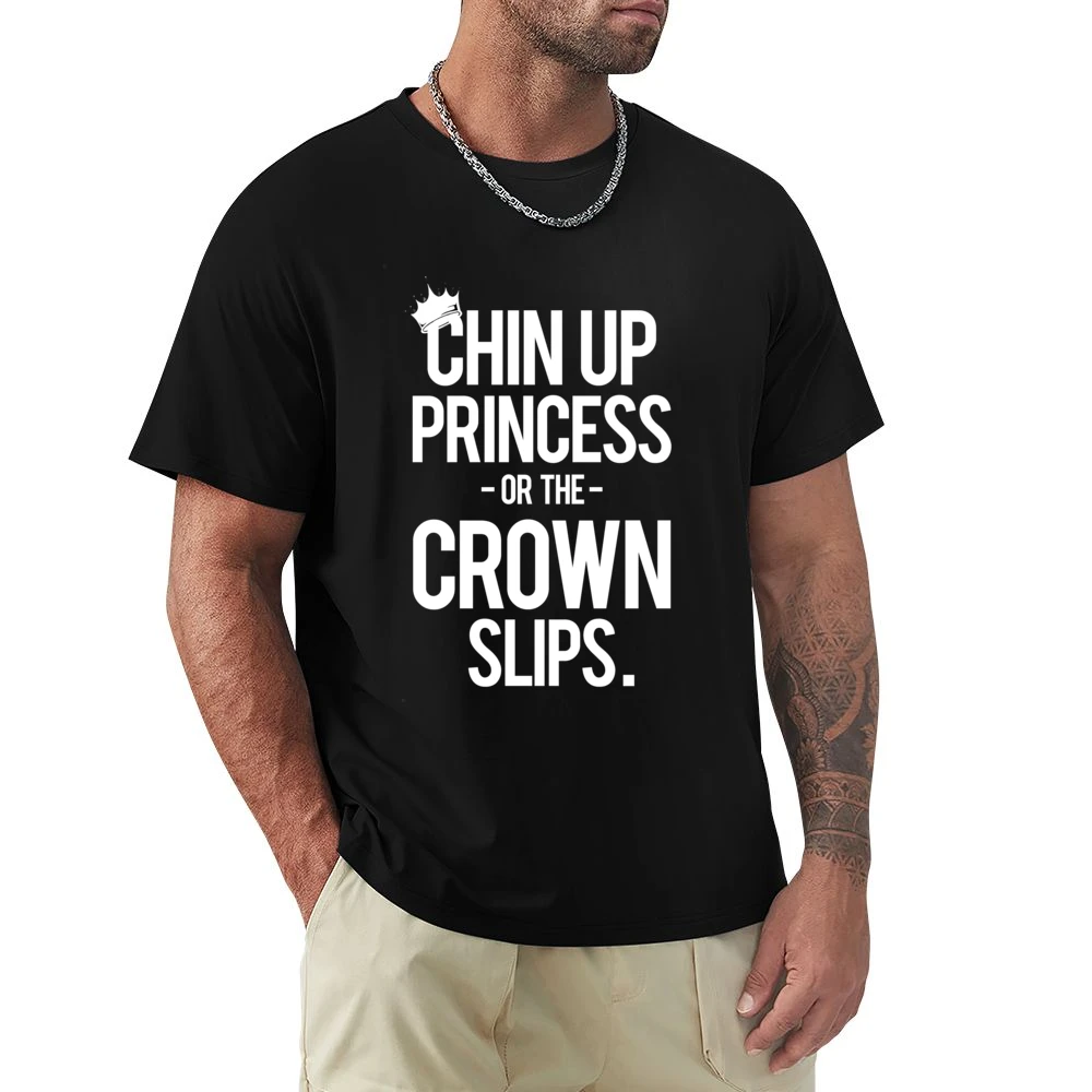 Designed with a fun and quirky graphic, this tee combines humor with a dash of royal flair. The slogan, “Chin Up Princess Or The Crown Slips,” serves as a daily reminder to keep your head held high, no matter the challenge. This design is perfect for those who appreciate an artistic approach to slogans, making it more than just a piece of clothing—it’s a statement. The versatility of this T-shirt means you can wear it to casual outings, brunch with friends, or even a relaxed day at home.
