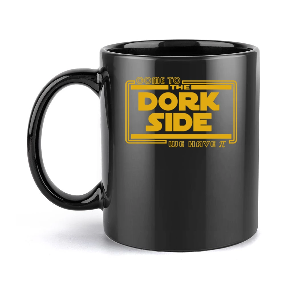 Join the ranks of proud dorks with our amusing Star Wars parody ceramic coffee mug. Its clever design and functionality make it an essential item for any geek or nerd’s daily life. Don’t miss out on your chance to showcase your personality while enjoying your favorite beverages. Get your “Come to the dork side, we have pi” mug today and celebrate the wonderful blend of geek culture and humor!