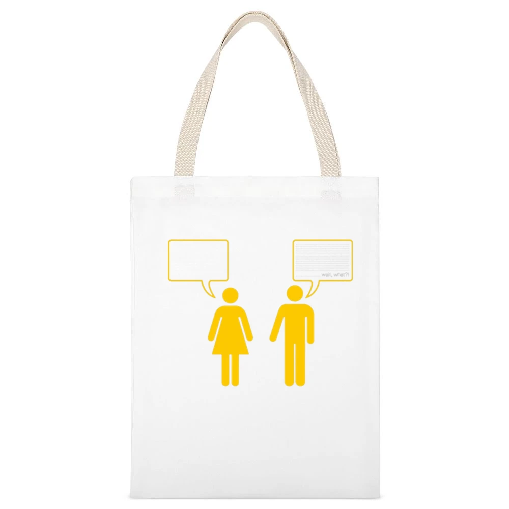 The funny canvas tote bag showcases a witty design that speaks to the humorous side of relationships. Inspired by the daily quirks that couples often encounter, the graphic encapsulates a lighthearted moment that many can resonate with. Whether it’s a playful jab or a misunderstood comment, this illustration captures it all in a fun, engaging style. Perfect for anyone who values humor in their life, this canvas tote bag serves as a conversation starter while beautifully representing the playful dynamics of couplehood.