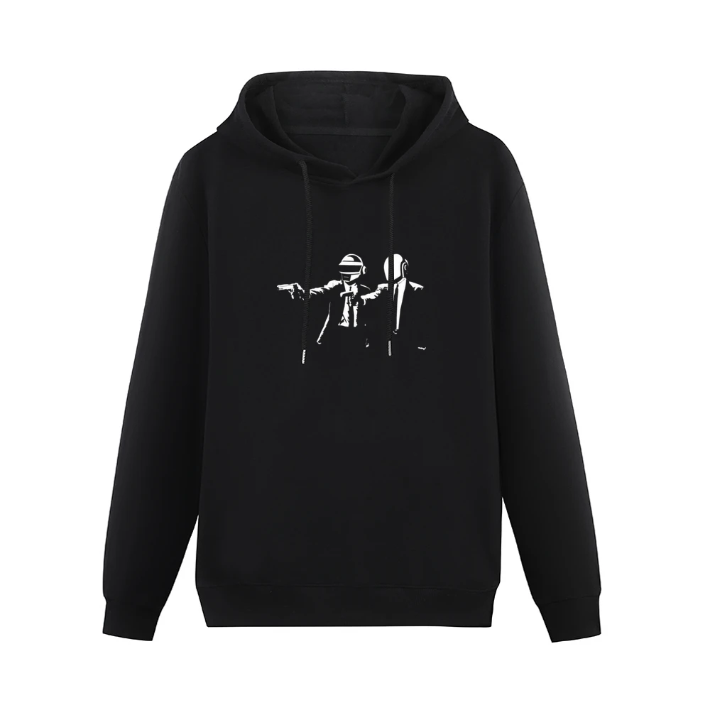Introducing the striking Daft Punk duo house music artist hoodie, featuring iconic imagery inspired by the unforgettable characters Vincent and Jules from the cult classic film Pulp Fiction. This unique hoodie seamlessly blends the worlds of music and cinema, creating an eye-catching piece perfect for any fan’s wardrobe.