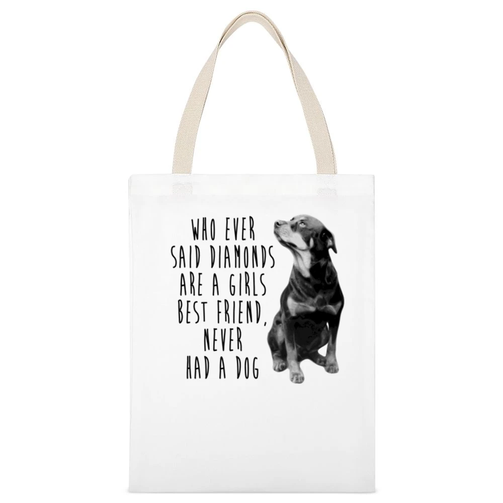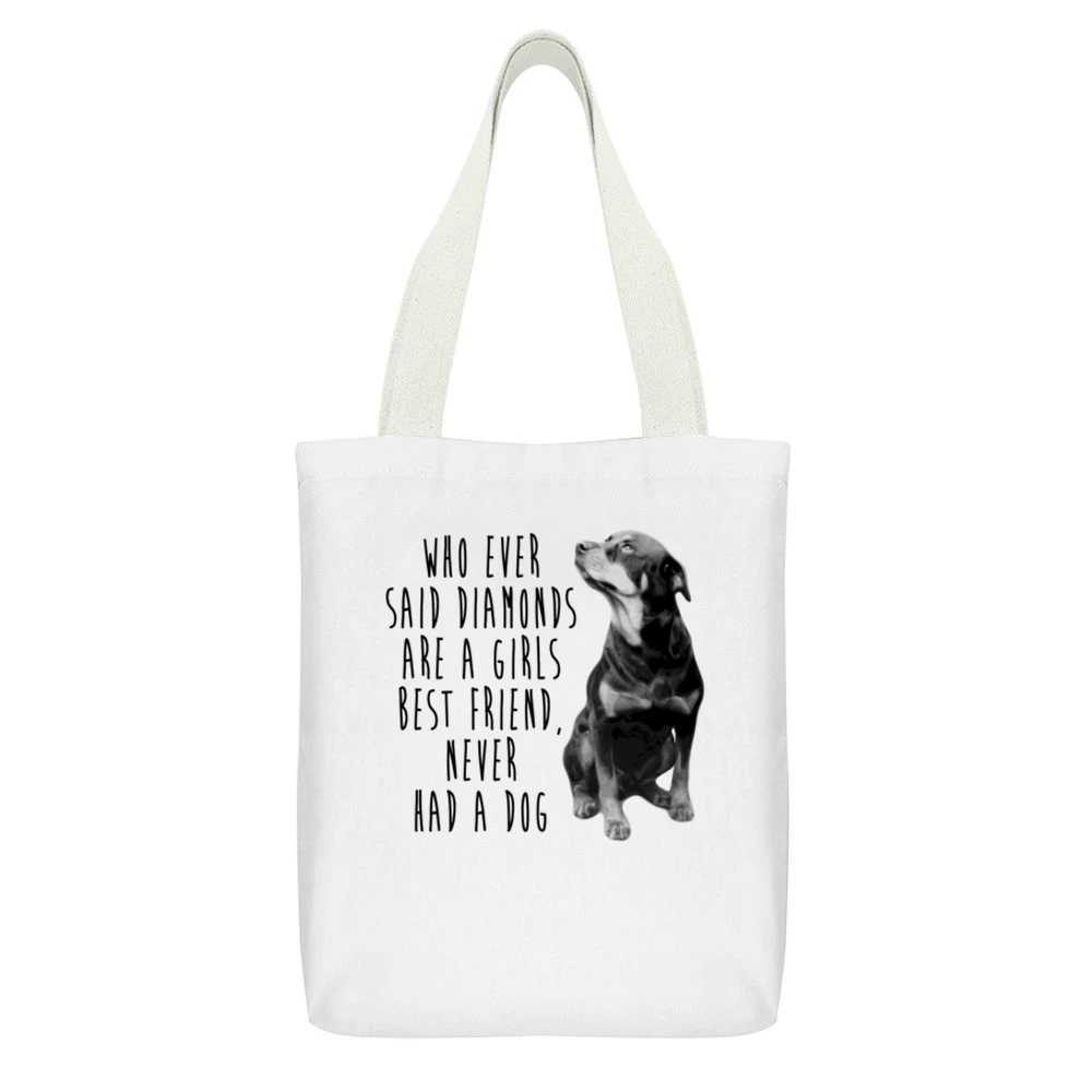 Introducing our stunning “Diamonds Are A Girls Best Friend Never Had A Dog” Rottweiler Canvas Tote Bag, where playful charm meets practical utility. This unique design captures the essence of canine companionship while celebrating the bond that we share with our four-legged friends.
