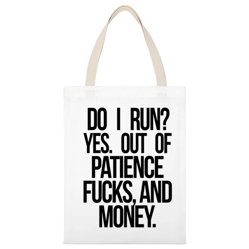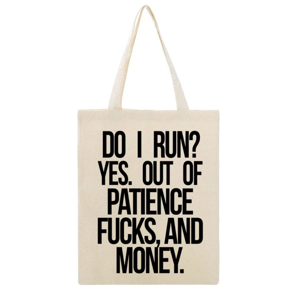 Whether you’re using it to make a statement at your local farmer’s market or bringing it along for a weekend getaway, the DO I Run Yes Out Of Patience Fucks And Money Funny Graphic Canvas Tote Bag is sure to become your go-to accessory. Embrace your unique style and let your tote express your personality. Don’t miss out on the chance to combine humor with practicality; grab yours today and enjoy a blend of fun and function in one stylish package!