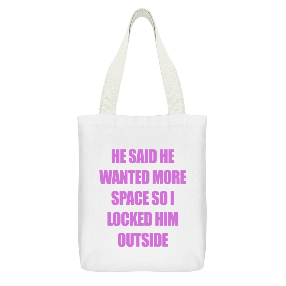 Don’t miss out! Add the **Dump Him Addison Rae Funny Locked Him Outside Graphic Ladies Canvas Tote Bag** to your collection today and let your accessories speak volumes about your personality!