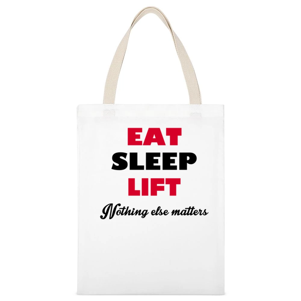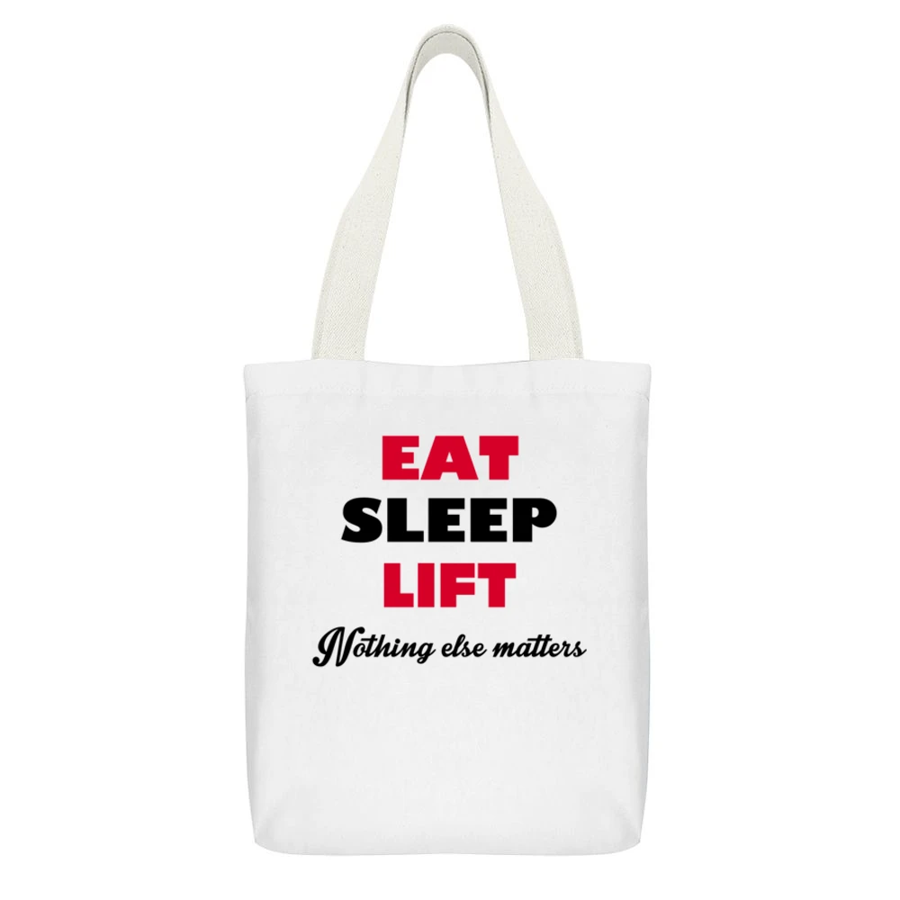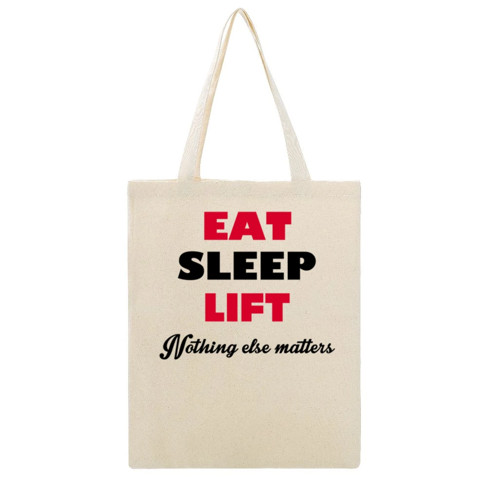 In addition to its practical features, the Eat Sleep Lift Nothing Else Matters Canvas Tote Bag reflects the motivational spirit that drives so many of us. It’s ideal for carrying your workout gear, grocery shopping, or simply as a statement piece to showcase your dedication to fitness. Share your passion wherever you go and inspire others to adopt a similar mindset.