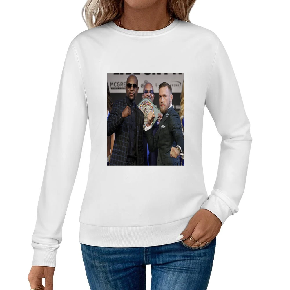 Introducing the ultimate tribute to the legendary showdown between Floyd Mayweather and Conor McGregor: the Moneybelt T-shirt Pullover Sweatshirt. This unique apparel seamlessly blends striking design elements with everyday functionality, making it a must-have for any fight fan.