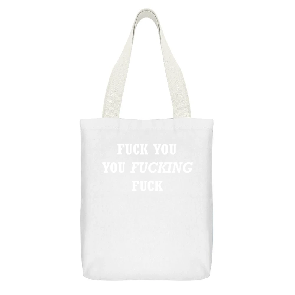 Crafted from high-quality materials, the FU you Fng F Canvas Tote Bag features durable canvas that withstands everyday wear and tear. This robust fabric ensures that your bag can handle your daily essentials, from groceries to gym gear. With its spacious interior, it provides ample room for all your necessities, making it a fantastic choice for anyone on the go. The practical yet stylish handles allow for comfortable carrying, whether you’re using it as a handbag or a shopping tote.