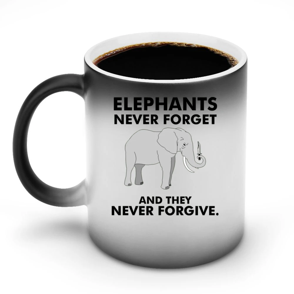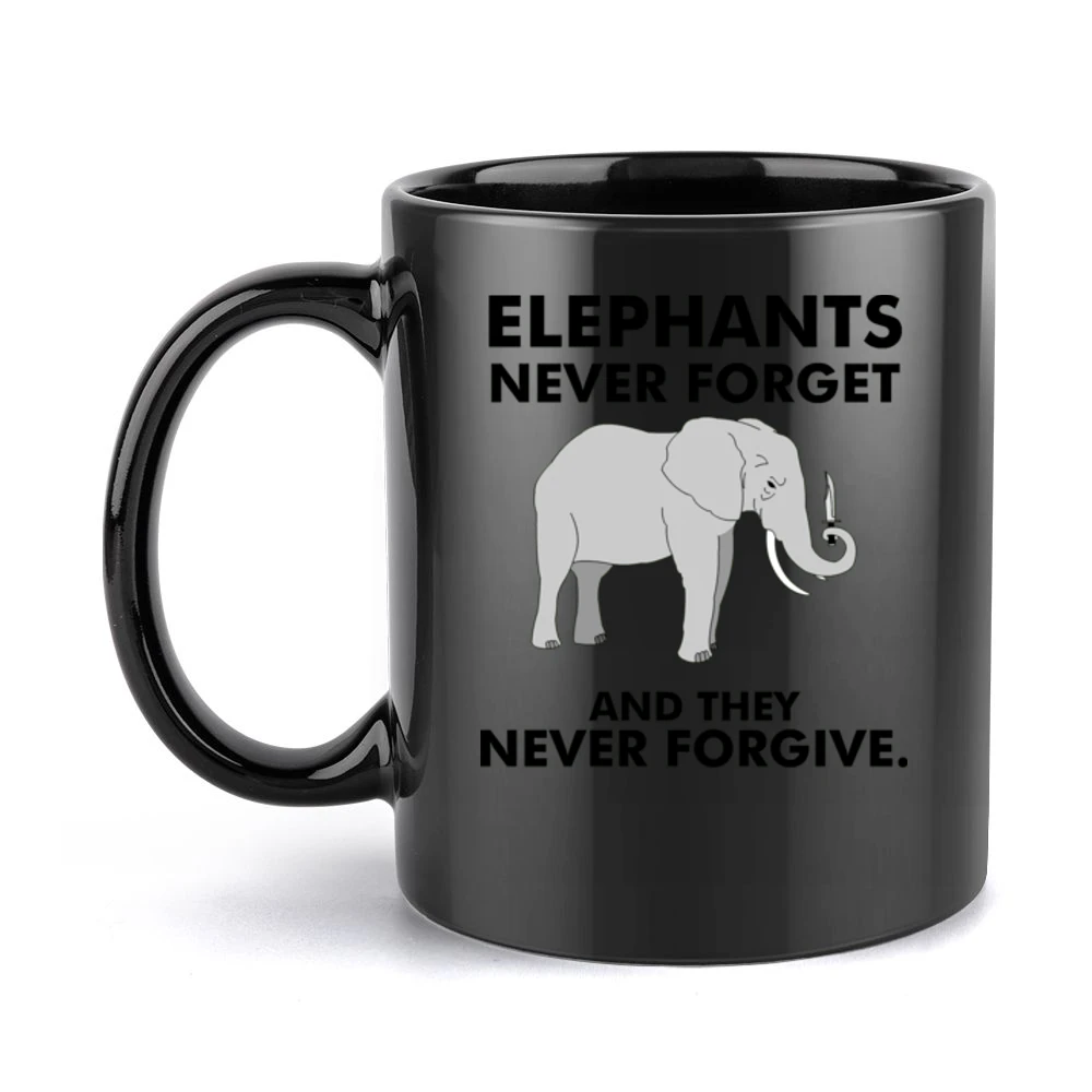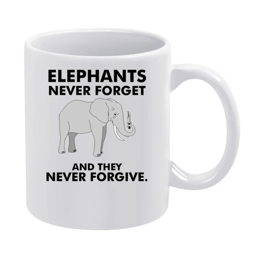 Introducing the Funny Elephant with Knife – They Never Forget and They Never Forgive Mug, a delightful blend of humor and artistry that transforms your daily coffee routine into something truly special. Designed for elephant lovers and those with a unique sense of humor, this ceramic coffee mug features a quirky elephant graphic that’s sure to spark conversations.