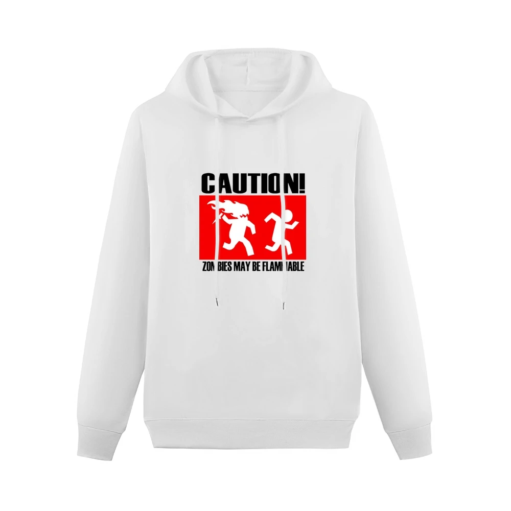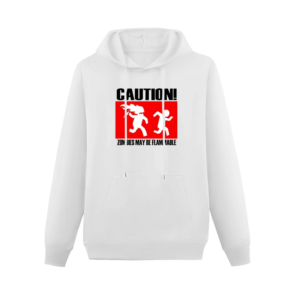 Introducing the ultimate conversation starter: the Funny Sign Caution Zombies May Be Flammable Hoodie. This hoodie is more than just a piece of clothing; it’s a unique blend of humor and practicality that serves as a perfect addition to your wardrobe. Featuring a clever and eye-catching design, this hoodie is sure to turn heads while keeping you warm and comfortable.