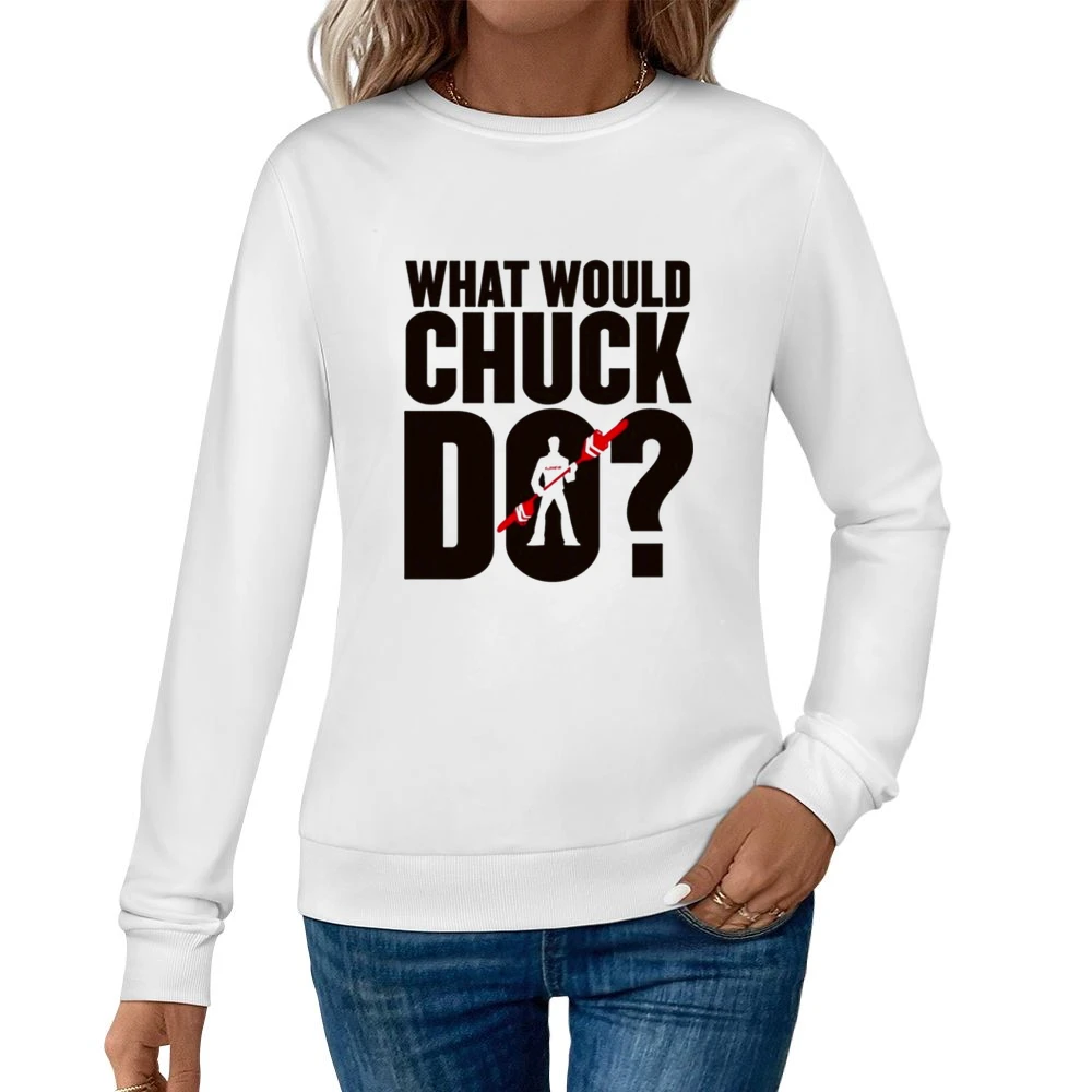 The design features a playful typography style that highlights some of the most hilarious sayings from Chuck Norris, making it perfect for fans of pop culture and those who appreciate a good laugh. The chic typography not only sets this sweatshirt apart but also celebrates the timeless influence of Chuck Norris in today’s entertainment landscape. By wearing this pullover, you’re not just donning a garment; you’re embracing a piece of humorous history that resonates with countless fans around the globe.