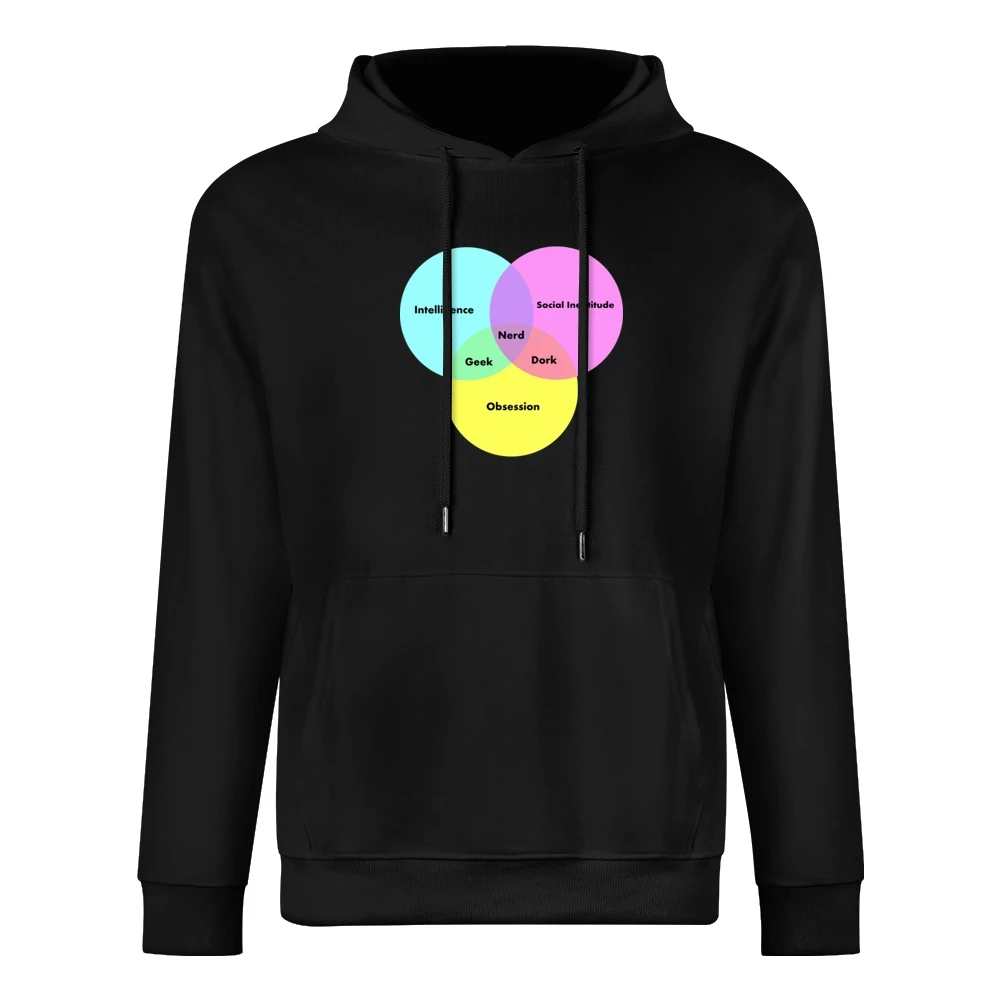 Introducing the ultimate icebreaker for the socially savvy: the Funny Venn Diagram Nerd Dork Geek Hoodie. Not only does it showcase a whimsical blend of intelligence and social ineptitude through its unique Venn diagram design, but it’s also crafted from high-quality materials to keep you cozy and stylish.