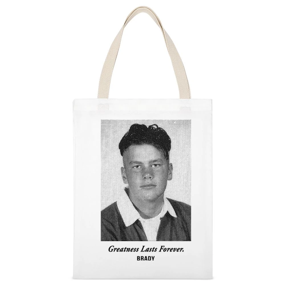 Moreover, the Greatness Lasts Forever Tom Brady Yearbook Canvas Tote Bag is also an excellent gift choice for the sports lovers in your life. Birthdays, holidays, or just because—this bag is perfect for anyone who admires the spirit of competition. Surprise your loved ones with a functional yet fashionable item that they can proudly carry wherever they go.