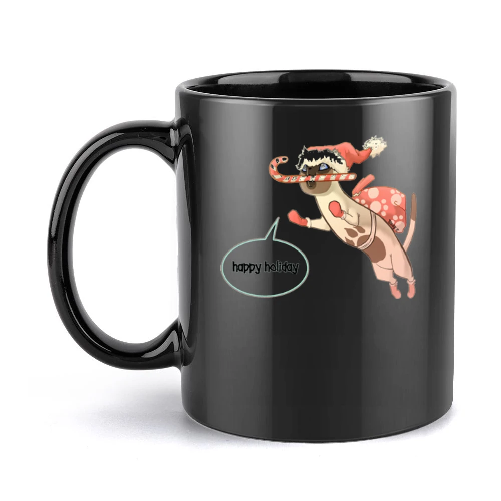 Happy Holiday Cat Cartoon Mug is the perfect blend of festive cheer and functional design, making it an ideal addition to your kitchenware collection. This whimsical mug features an adorable cat cartoon that captures the spirit of the holiday season, while its sturdy ceramic construction ensures durability for everyday use.