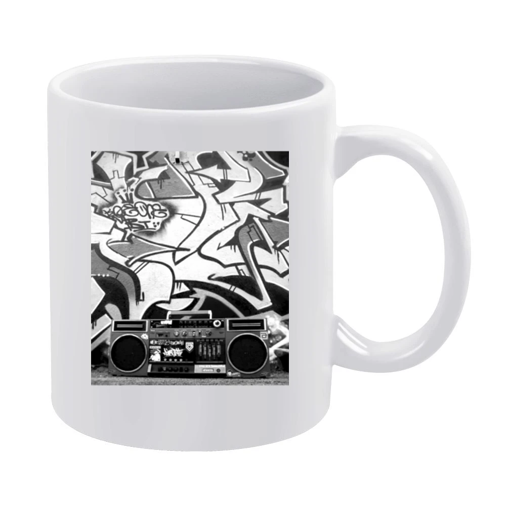 Our Hip Hip Ghetto Blaster Mug complements the t-shirt perfectly, adding a touch of hip-hop flair to your morning coffee routine. Made from high-quality ceramic, this mug is not only visually appealing with its eye-catching design but also functional for everyday use. It’s perfect for savoring your favorite beverages at home, in the office, or as a standout piece during social gatherings. The vivid print ensures that this mug will spark conversations and evoke fond memories of the hip-hop culture.