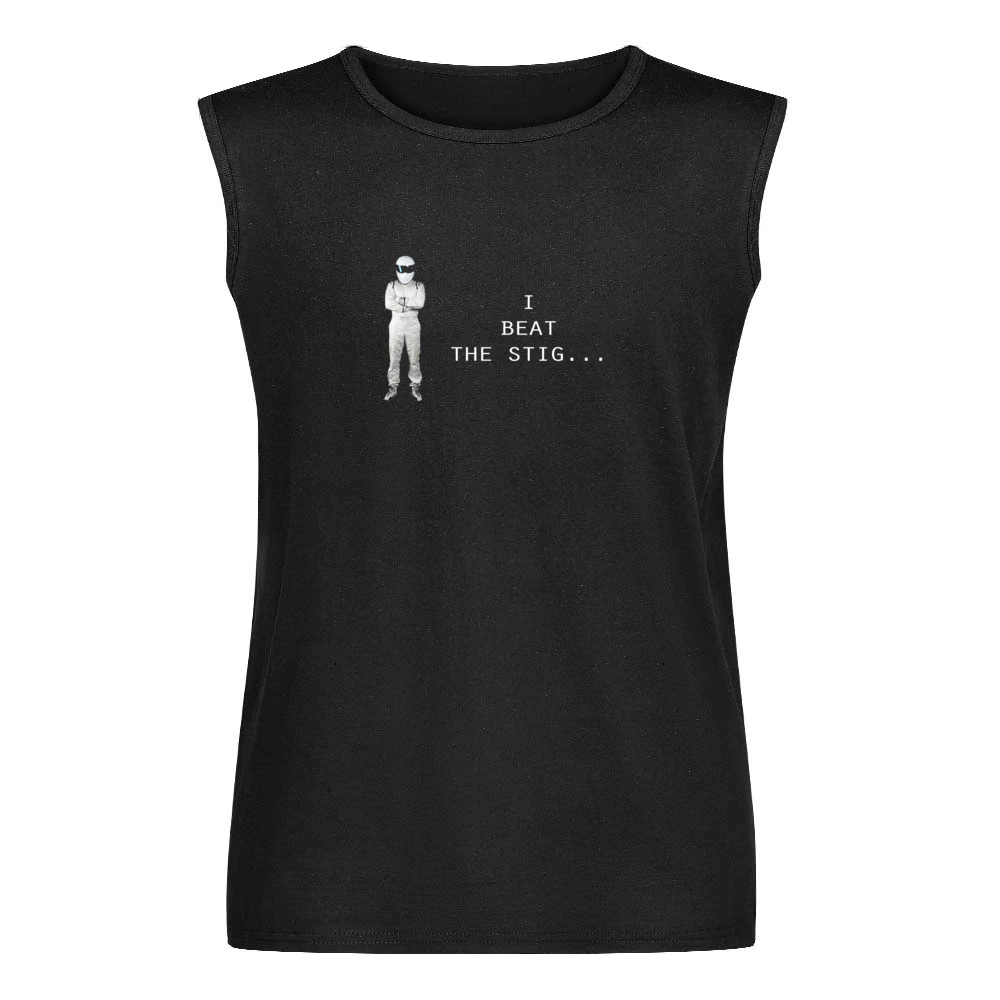 Dive into the thrilling world of **Top Gear** with this tee that boldly declares, “I Beat the Stig.” Inspired by the iconic British television show, this design captures the high-speed excitement and competitive spirit associated with racing. The vibrant and humorous graphic is sure to draw attention and provoke conversations among fellow fans. The image serves as a playful nod to the show’s enigmatic driver, known for his incredible speed and skill behind the wheel. Show off your racing passion while sharing a laugh with friends or family who understand the culture behind this hilarious reference.