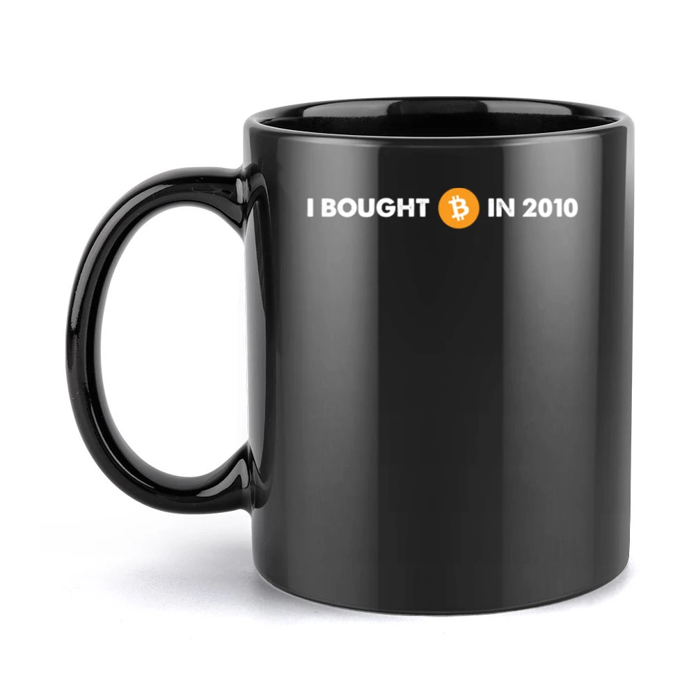 The design features the catchy phrase, “I Bought Bitcoin In 2010,” which pays homage to the early days of Bitcoin when it was just emerging as a revolutionary digital currency. This funny digital currency money mug isn’t just a conversation starter; it’s a badge of honor for those who were ahead of the curve. The style blends retro aesthetics with modern craftsmanship, making it a unique addition to any mug collection.