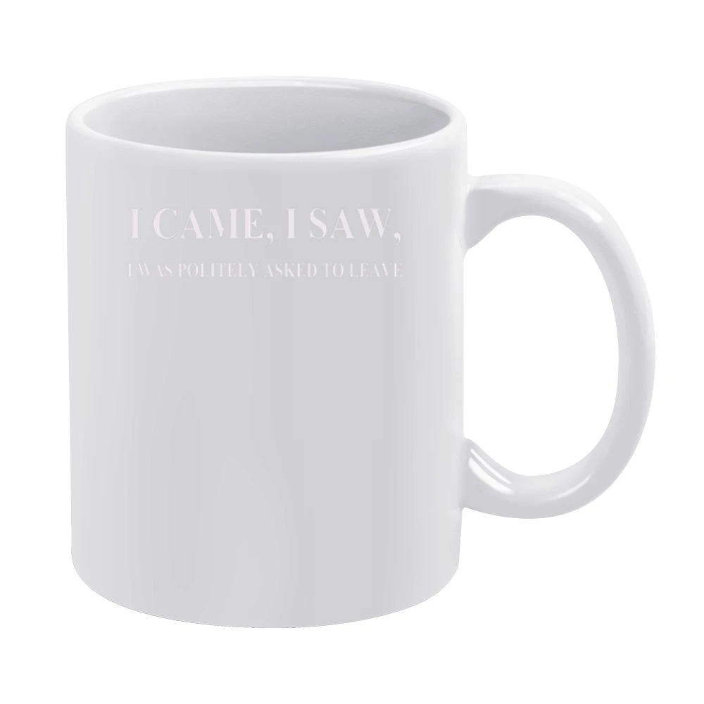 Bring a touch of humor to your day with the “I Came, I Saw, I Was Politely Asked to Leave” funny mug. Perfect for both personal enjoyment and gift-giving, this ceramic coffee mug is a staple for anyone who values a little wit in their daily routine. Order yours today and elevate your coffee experience with a hint of cheeky charm!
