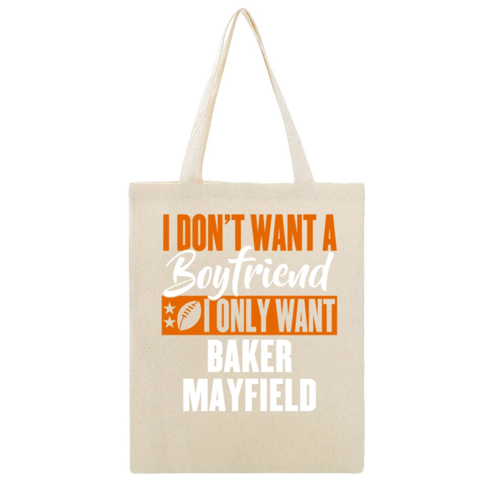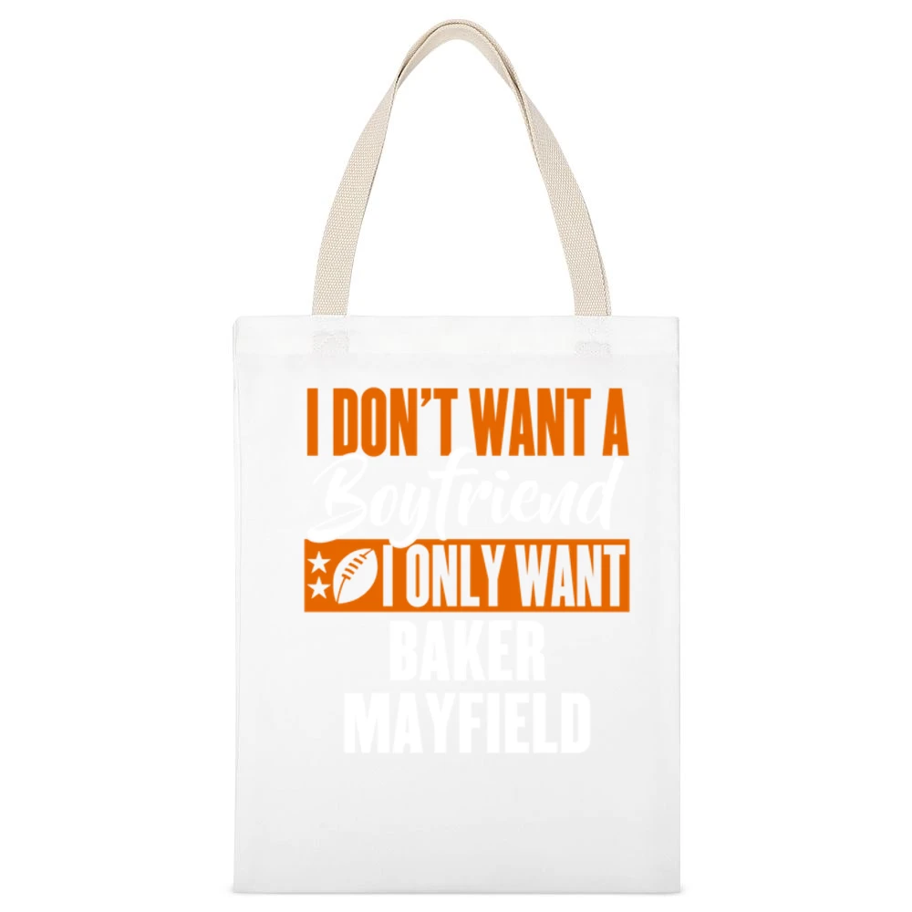 Every time you reach for this bag, you’ll be reminded of the excitement of the game, the thrill of victory, and funny moments shared with friends and family. It’s not just an accessory; it’s a statement piece that embodies your love for football and expresses your individuality. Don’t settle for ordinary; make a bold statement with our “I Don’t Want Boyfriend I Want Baker Mayfield Cleveland Football Funny Canvas Tote Bag”.