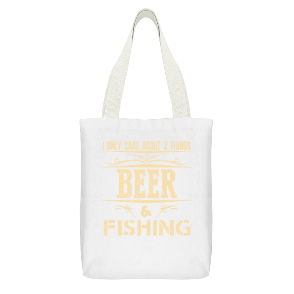 Introducing the ultimate companion for outdoor enthusiasts and casual adventurers alike: the “I Only Care About 2 Things Beer And Fishing Canvas Tote Bag.” This beautifully designed tote bag seamlessly blends a fun, eye-catching graphic with exceptional practicality, making it a must-have accessory for anyone who cherishes life’s simple pleasures.