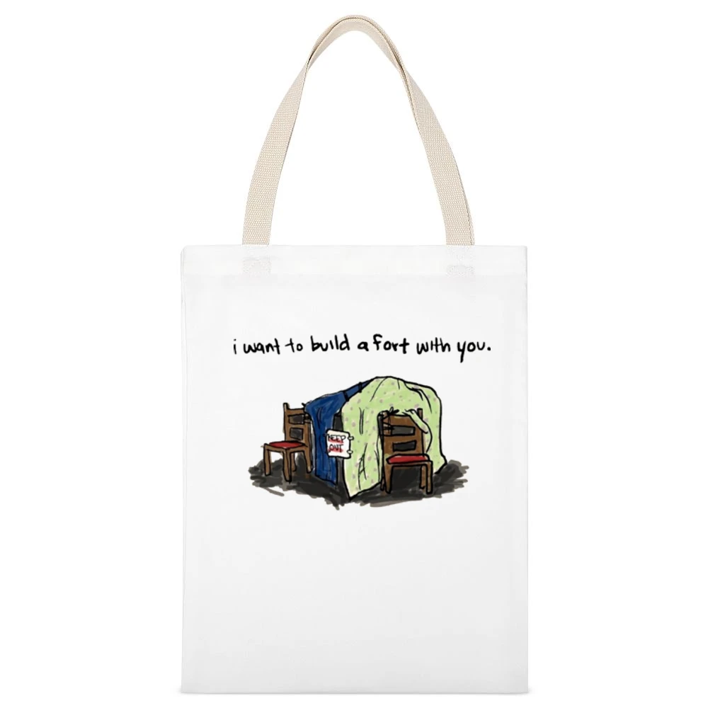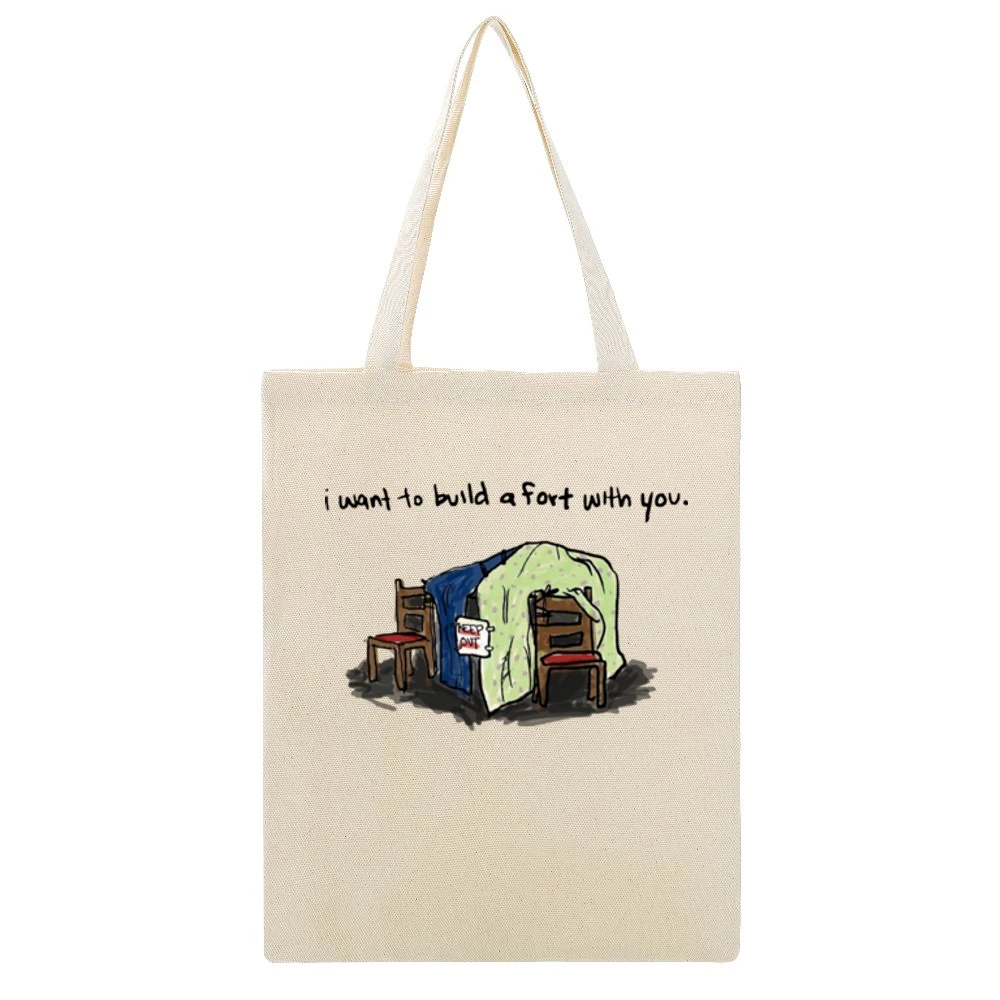 Introducing the ultimate blend of creativity and practicality – the “I Want to Build a Fort with You” Canvas Tote Bag. Perfectly designed for those who cherish special moments, this tote bag not only features a whimsical and heartwarming design but also offers exceptional utility for your daily adventures.