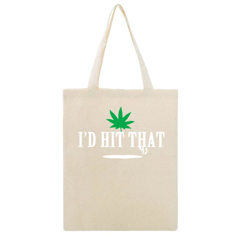 The standout feature of this tote is undoubtedly its eye-catching graphic. With the phrase “I Would Hit That” alongside a creatively designed cannabis joint, it embraces a trendy and humorous vibe. This graphic draws inspiration from the vibrant cannabis culture and aims to spark conversations wherever you go. Whether you’re heading to a music festival, a casual outing, or simply running errands, this tote adds a fun twist to your ensemble. It’s not just a bag; it’s a statement piece that resonates with those who appreciate a lighthearted take on cannabis.