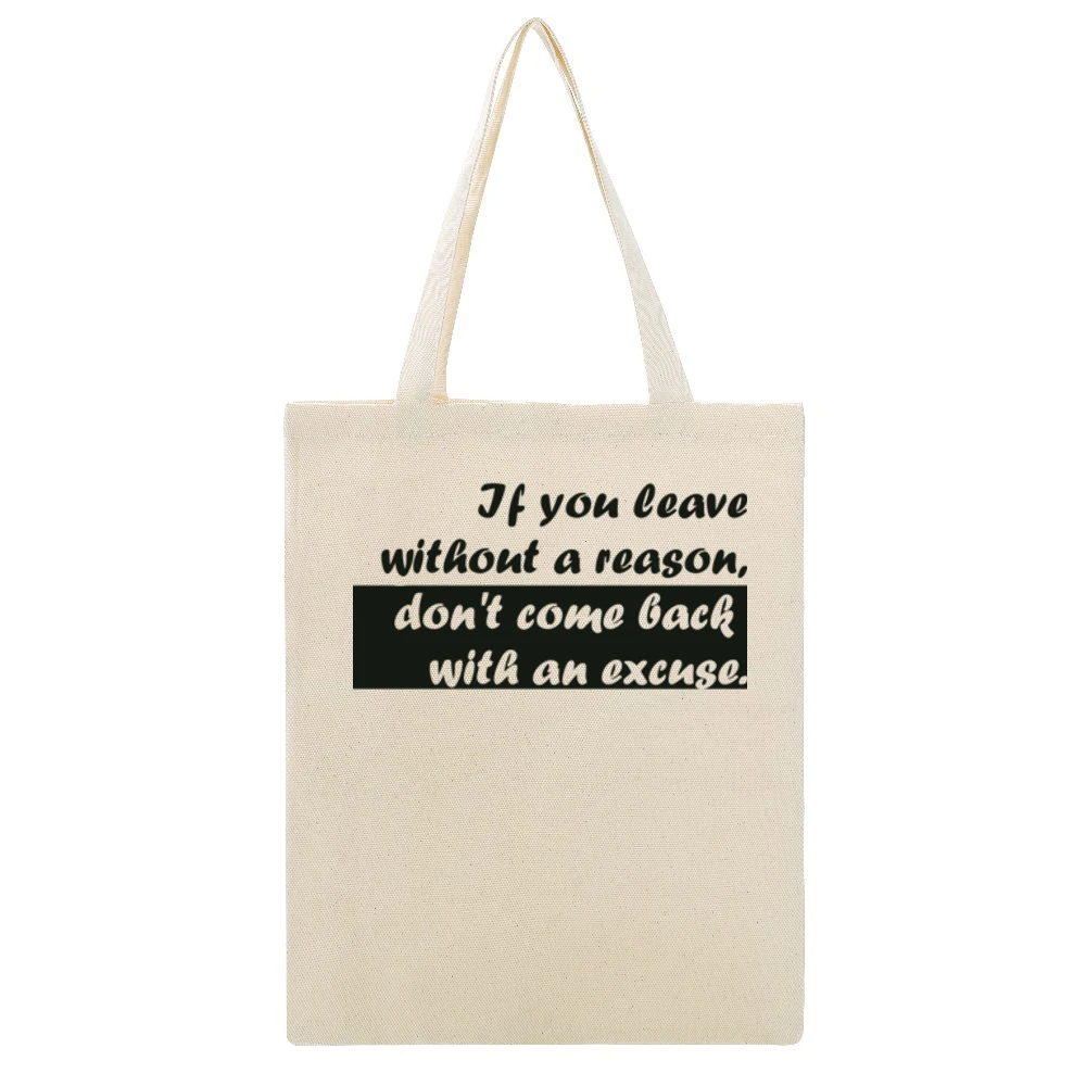 Incorporating the cool tones and thought-provoking message of the If You Leave Without a Reason design, this canvas tote serves both aesthetic and functional purposes. It encourages individuals to reflect on their journeys and connections, making it not just a bag, but a source of inspiration. Get your own today and experience how a simple tote can elevate your everyday look and spark meaningful dialogue.