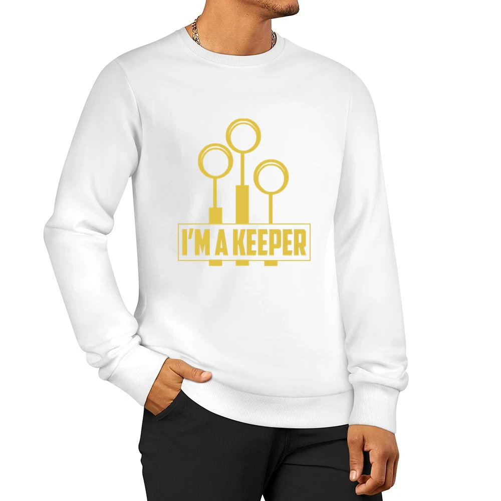 In addition to its great design and comfort, this sweatshirt can easily be paired with your favorite jeans, leggings, or even shorts, making it a versatile addition to your closet. Wear it while flying high during Quidditch matches, or throw it on for a casual day out with friends—it’s the ideal blend of fun and functionality. With the “I’m A Keeper” design proudly showcased, you can show off your team spirit while enjoying everyday activities.