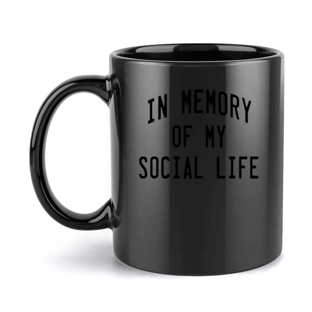 In conclusion, the “In Memory Of My Social Life” Funny Graphic Mug combines a charming design with high functionality, making it your new go-to mug for coffee, tea, or any beverage of choice. Treat yourself or gift it to a friend who needs a reminder that laughter is the best medicine. Get yours today and keep the spirit of socializing alive, one sip at a time!