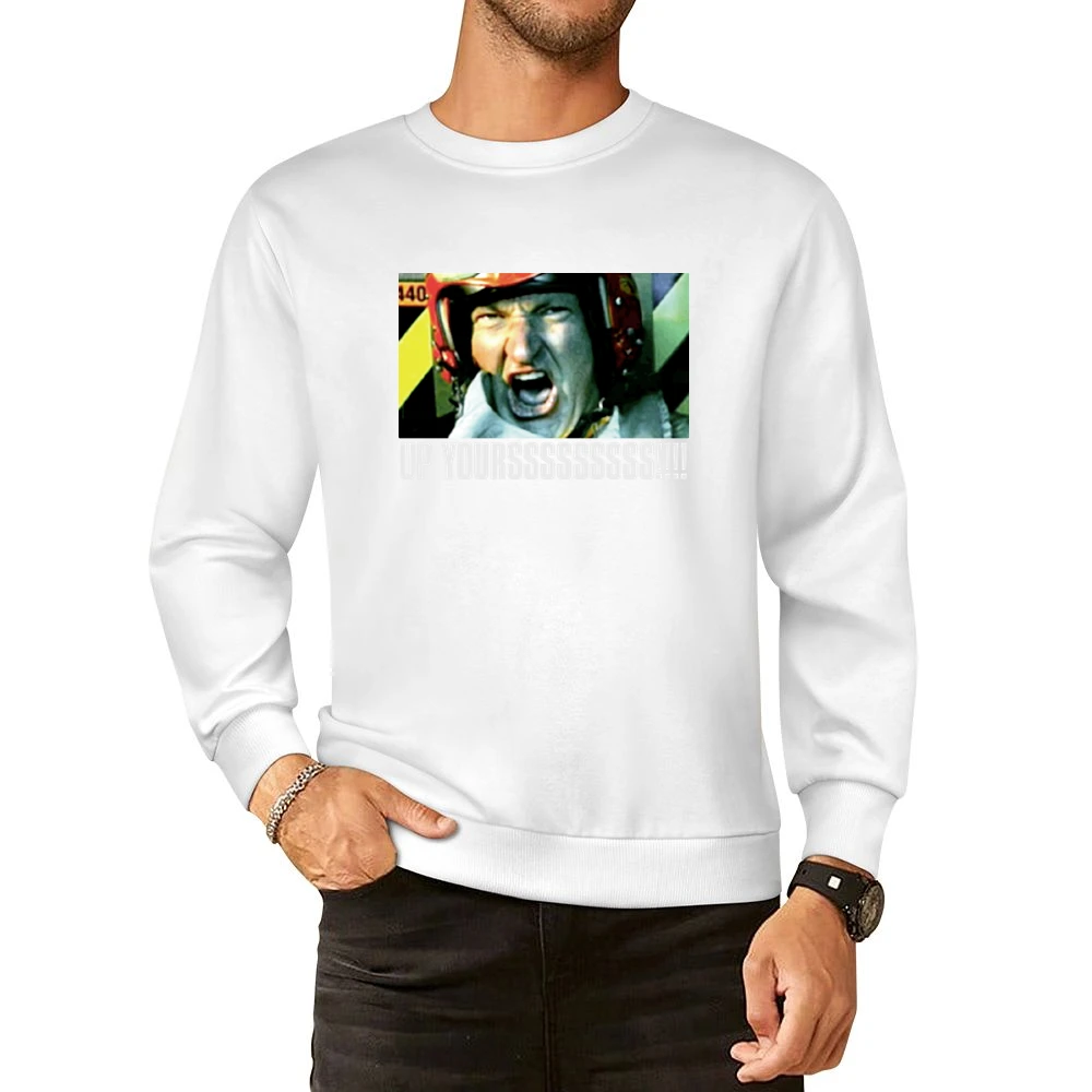 Crafted from high-quality materials, our Independence Day Russell Casse Up Yourssssssss Pullover Sweatshirt ensures you stay cozy while showcasing your love for classic cinema and festive occasions. The soft fabric provides warmth and comfort, making it perfect for those cooler summer nights. With its relaxed fit, this sweatshirt is not only stylish but also versatile, allowing you to easily layer it over your favorite summer tees or under a light jacket.