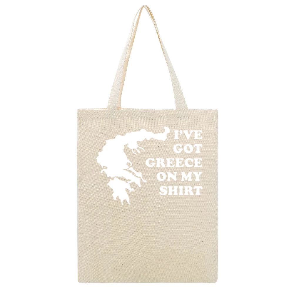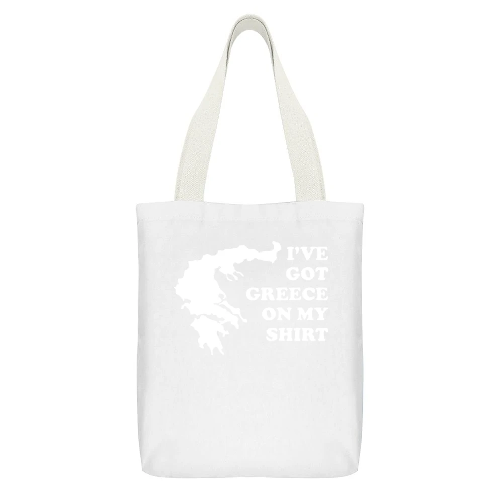 Introducing the “I’ve Got Greece On My Shirt” Funny Canvas Tote Bag – a delightful blend of humor and practicality for anyone who loves to express themselves while staying eco-friendly. This funny canvas tote bag features a whimsical design that captures the essence of Greek culture, making it a perfect accessory for daily use or as a conversation starter.