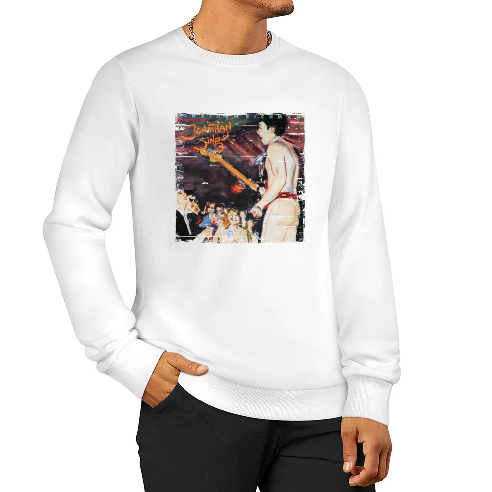 The centerpiece of this premium sweatshirt is its distressed image featuring the legendary album cover of Jonathan Richman’s “Jonathan Sings.” Celebrated for its playful melodies and heartfelt lyrics, this album continues to resonate with fans across generations. The vintage aesthetics of the cover art evoke a sense of nostalgia, making it a standout piece in any wardrobe. Whether you’re a lifelong fan or new to his music, this sweatshirt serves as a stylish tribute to an artist whose influence on the indie rock scene is undeniable.