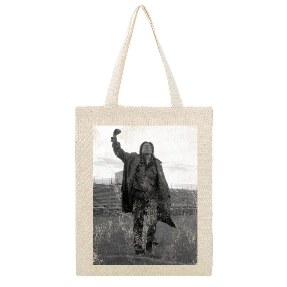 The design features a striking vintage graphic inspired by Judd Nelson’s memorable role in “The Breakfast Club,” making it a perfect accessory for any fan looking to wear their nostalgia with pride. With its unique style, this tote bag serves as a conversation starter, perfectly blending retro charm and modern functionality. Whether you’re heading to school, running errands, or enjoying a day out with friends, this tote bag adds flair to any outfit.