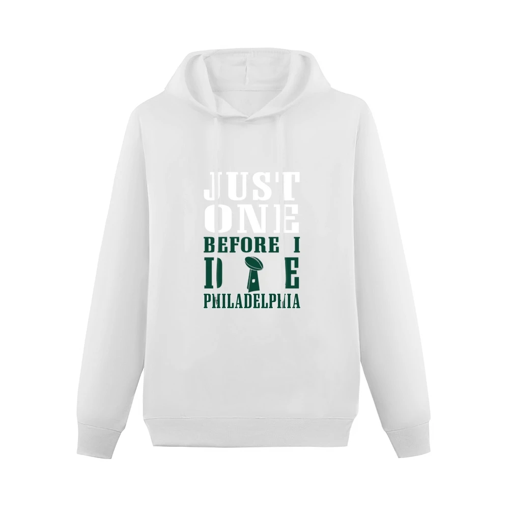 Introducing the Just One Before I Die Philadelphia Football Hoodie, a must-have for any passionate football fan. This hoodie combines a unique and eye-catching design with practicality, making it the perfect addition to your wardrobe for game days or casual outings.