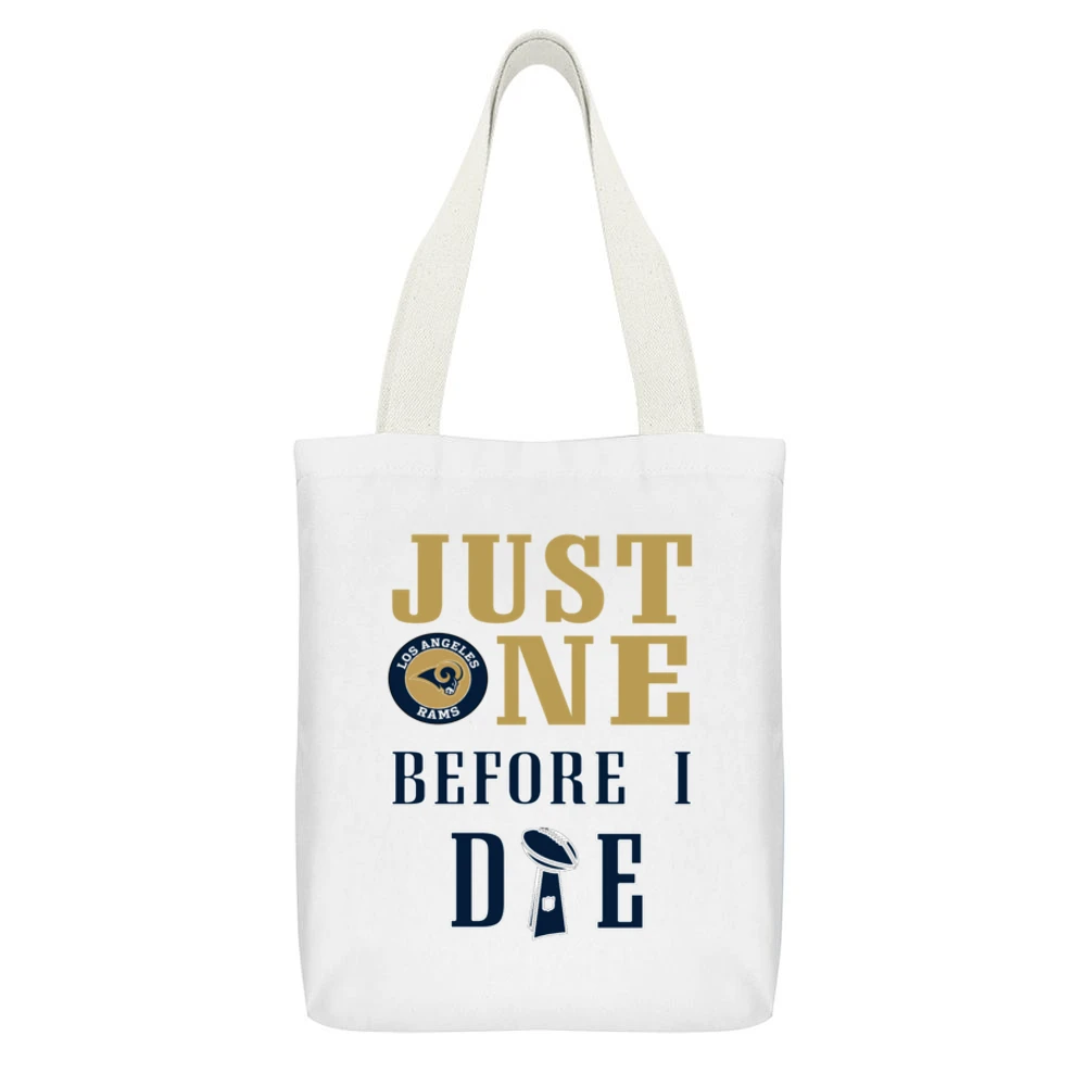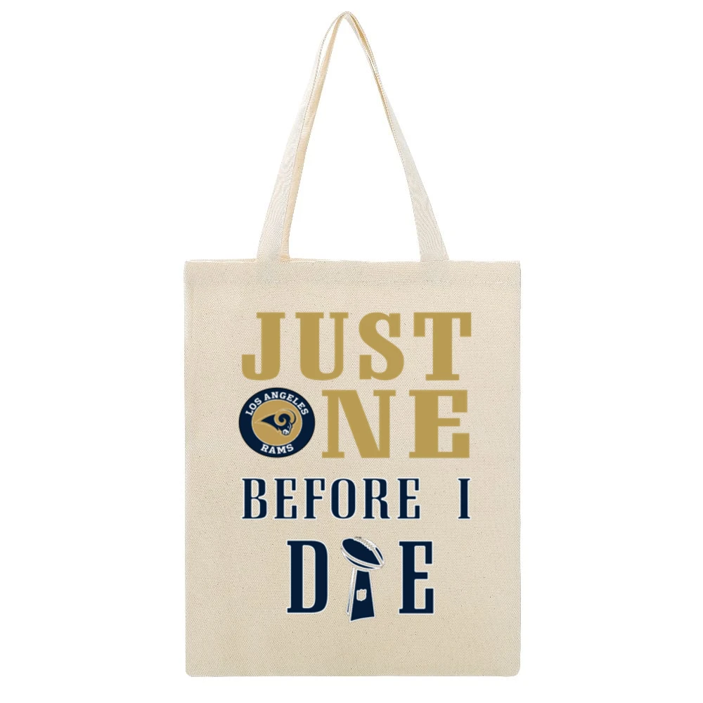 Just One Before I Die Rams Football Team Canvas Tote Bag is the ultimate accessory for die-hard fans and everyday adventurers alike. Combining a striking design inspired by the spirit of the Rams with the practicality of a durable canvas tote, this bag celebrates your love for football while offering functional versatility.