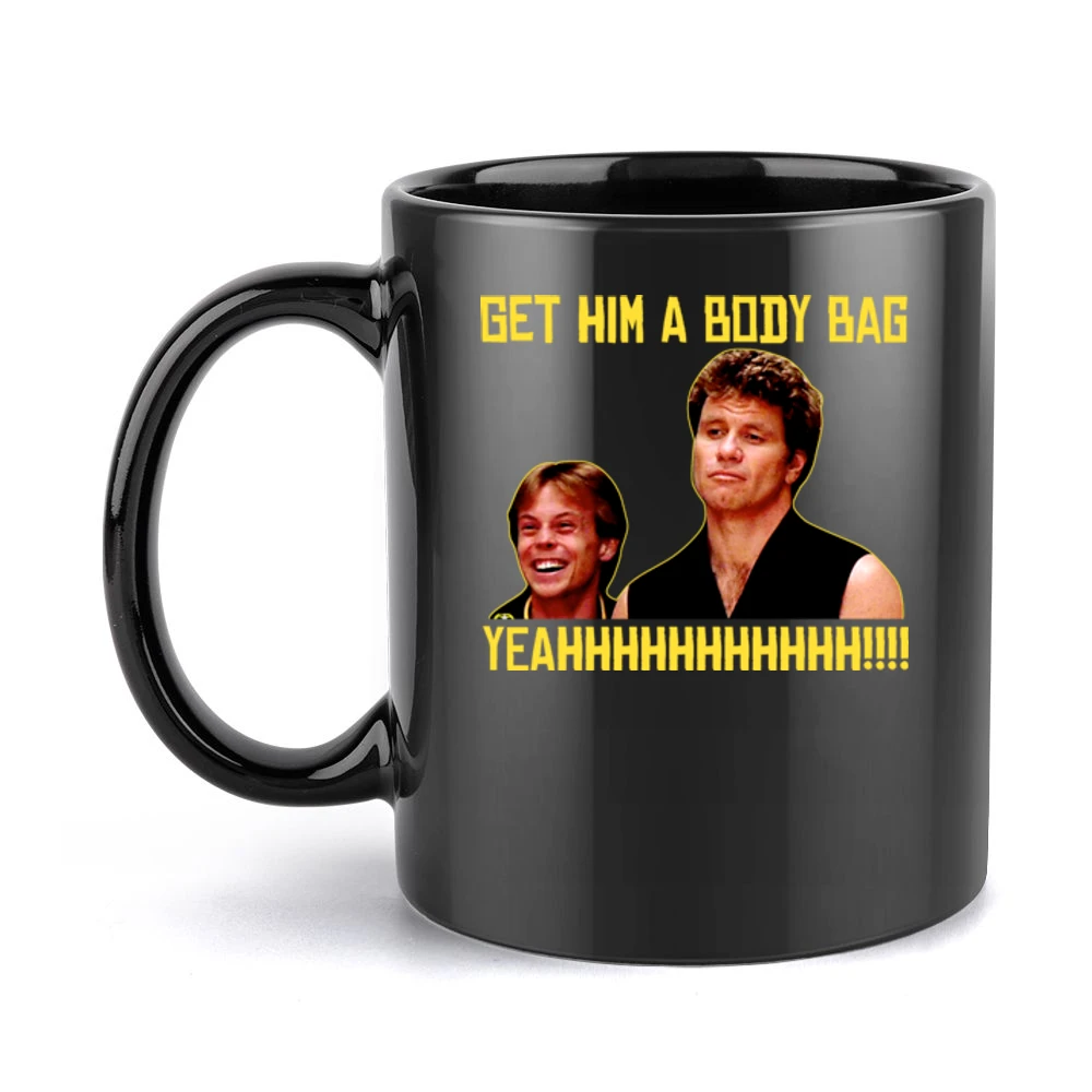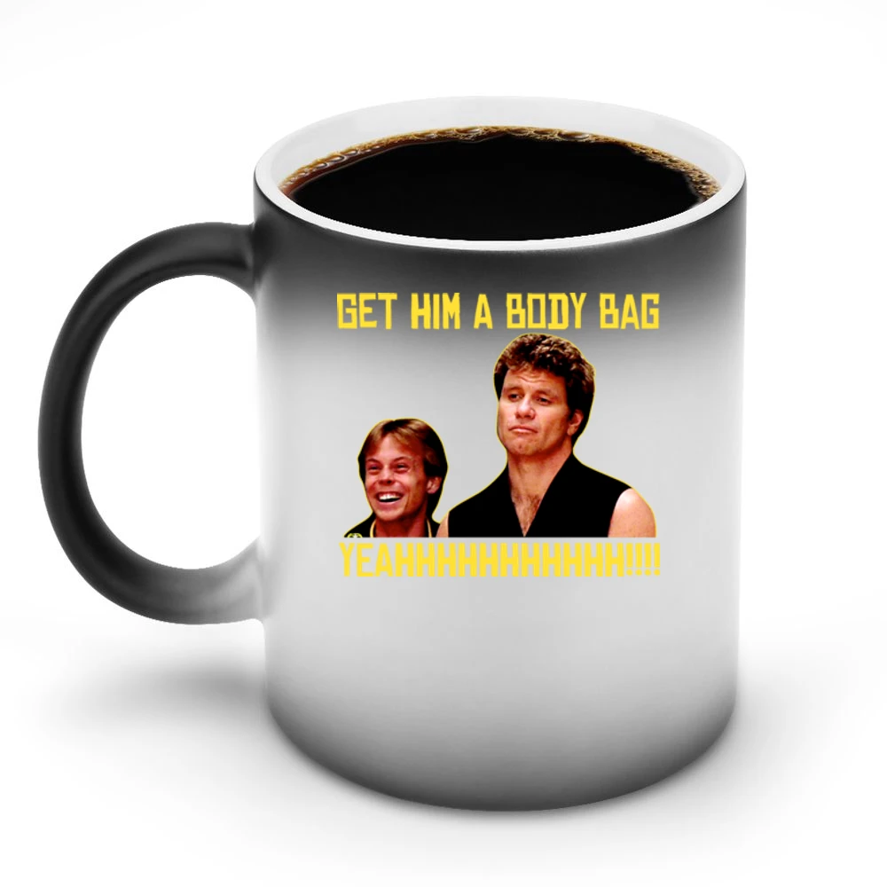 Introducing the Karate Kid Body Bag Mug, a unique blend of nostalgia and functionality. This ceramic coffee mug features an iconic design that pays homage to the timeless classic, making it a perfect choice for fans of the legendary film series while providing a practical vessel for your favorite beverages.