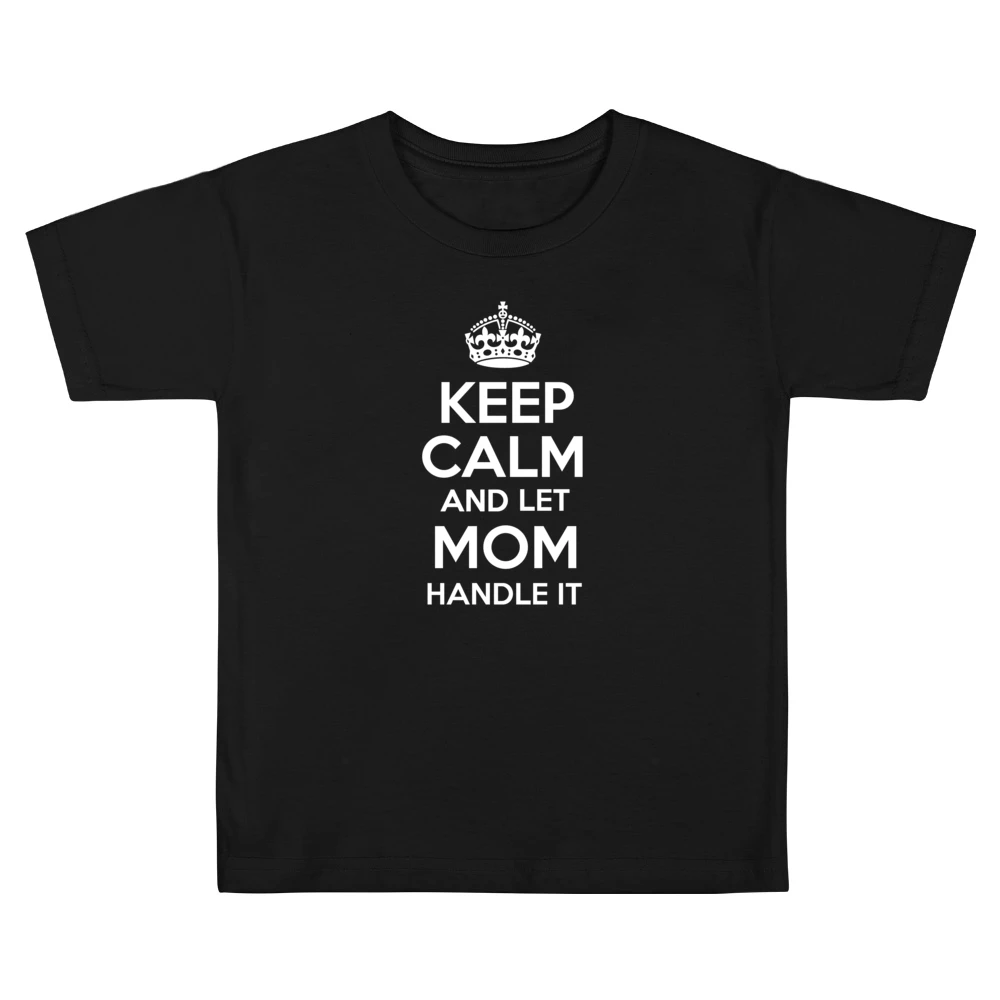 The iconic phrase “Keep Calm And Let Mom Handle It” is paired with a stylish font that speaks volumes about a mother’s ability to juggle multiple tasks with grace and poise. This design draws inspiration from a vintage style, ensuring that it stands out without compromising on elegance. Whether it’s a busy day at home or a picnic in the park, this T-shirt serves as a reminder that behind every family, there’s a mom who holds everything together.