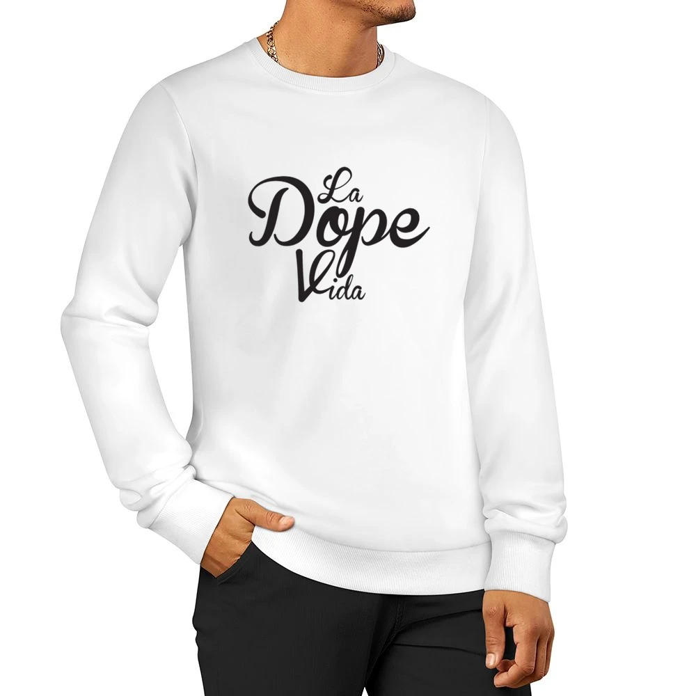 Introducing the La Dope Vida The Dope Life Fun Spanish Language Graphic Pullover Sweatshirt—your new favorite wardrobe staple that combines fun aesthetics with ultimate comfort. Stylish and versatile, this sweatshirt is perfect for those who love to showcase their personality while enjoying a cozy fit.