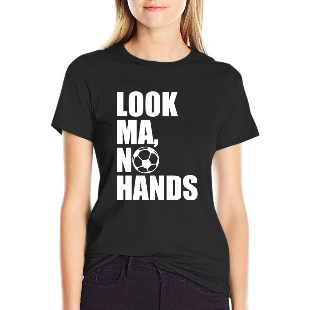 Introducing the hilarious and eye-catching “Look Ma No Hands” Funny Soccer Player Fan Graphic T-Shirt—your new favorite way to show off your love for soccer in style! This unique graphic tee combines a lighthearted design with comfort, making it an essential addition to any soccer enthusiast’s wardrobe.