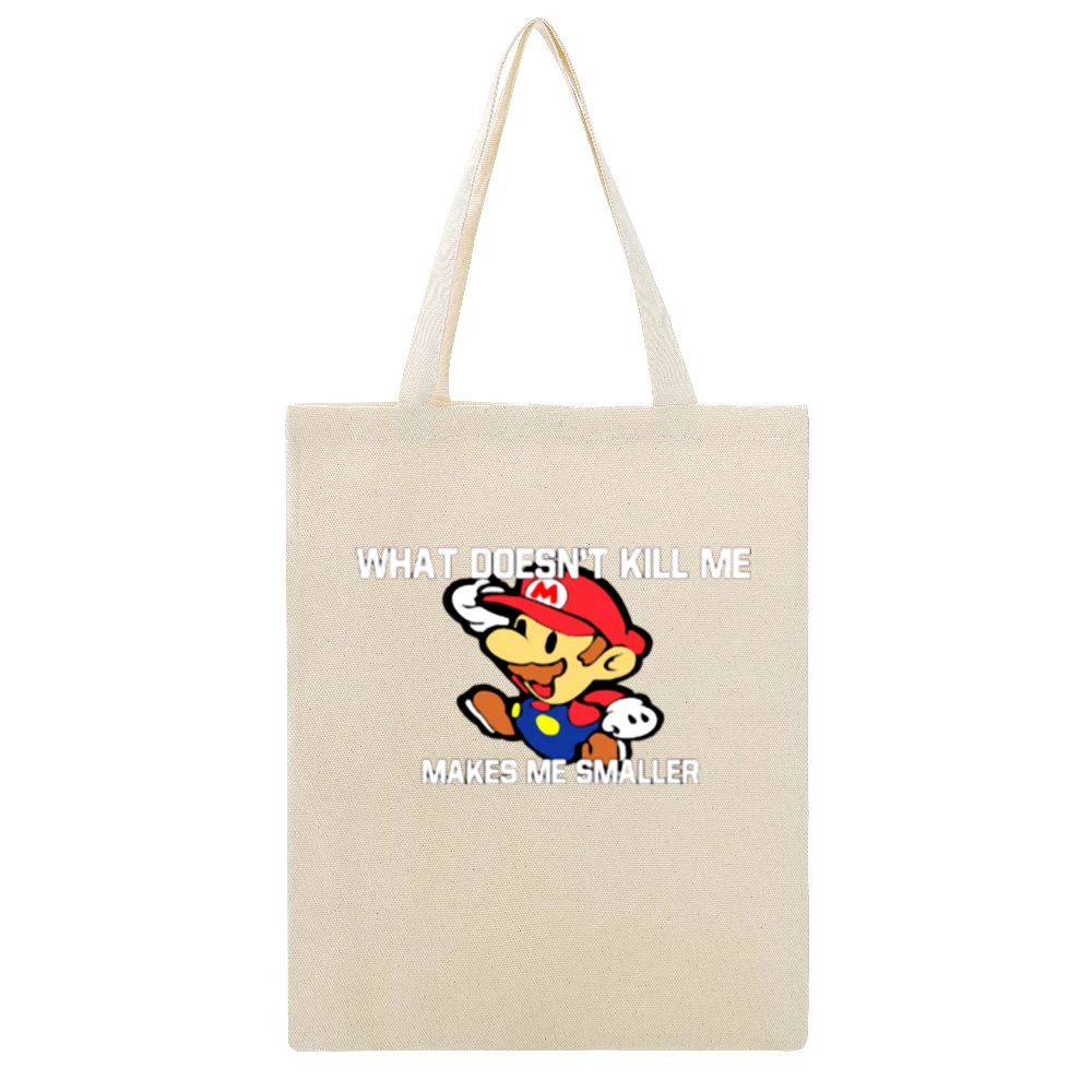 Introducing the Makes Me Smaller Canvas Tote Bag, a perfect blend of style and practicality. Featuring a unique graphic design that captures the essence of creativity, this tote bag not only elevates your outfit but also serves as a reliable companion for your daily endeavors.