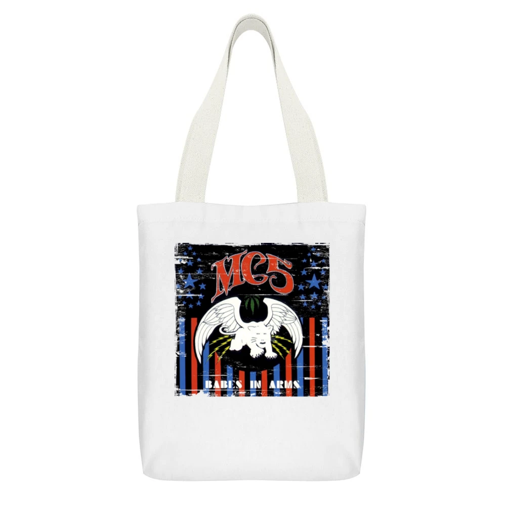 In summary, the Mc5 Babes In Arms Album Cover Distressed Image Canvas Tote Bag is more than just a bag; it’s a statement piece that resonates with music history while serving modern purposes. With its eye-catching design and practical features, it’s the ultimate accessory for daily commutes, shopping trips, or casual outings. Don’t miss out on the opportunity to embrace iconic music culture in a functional way!